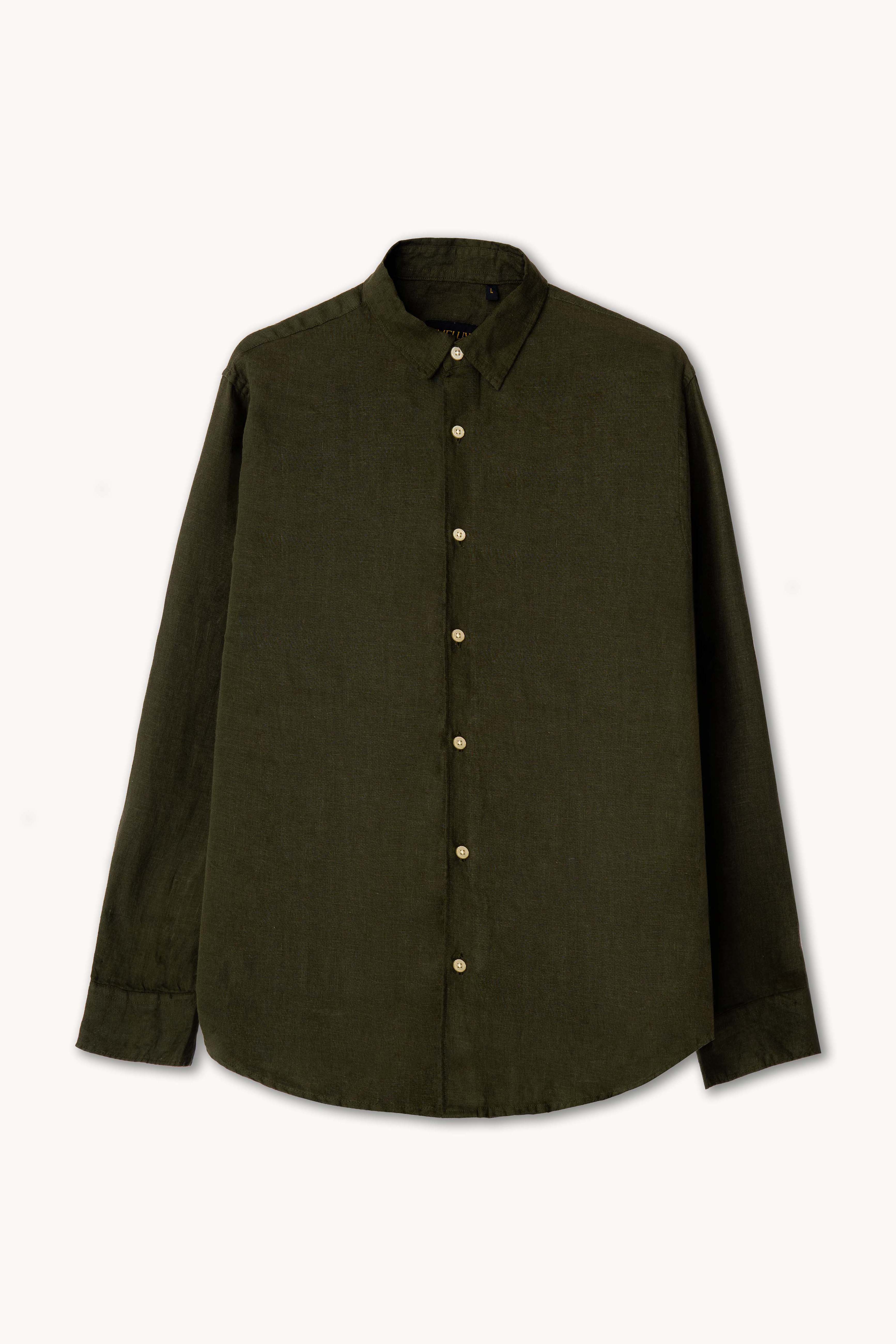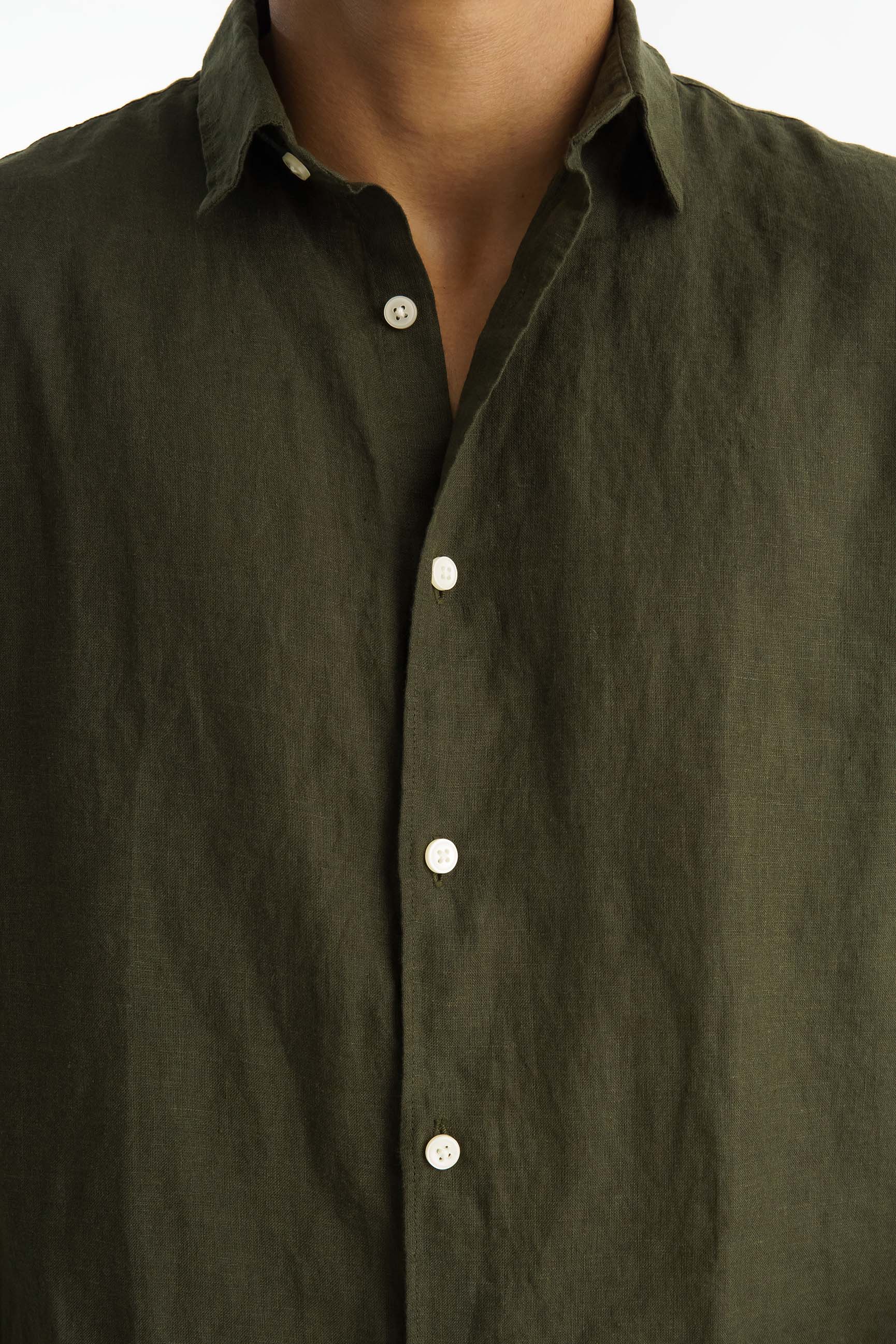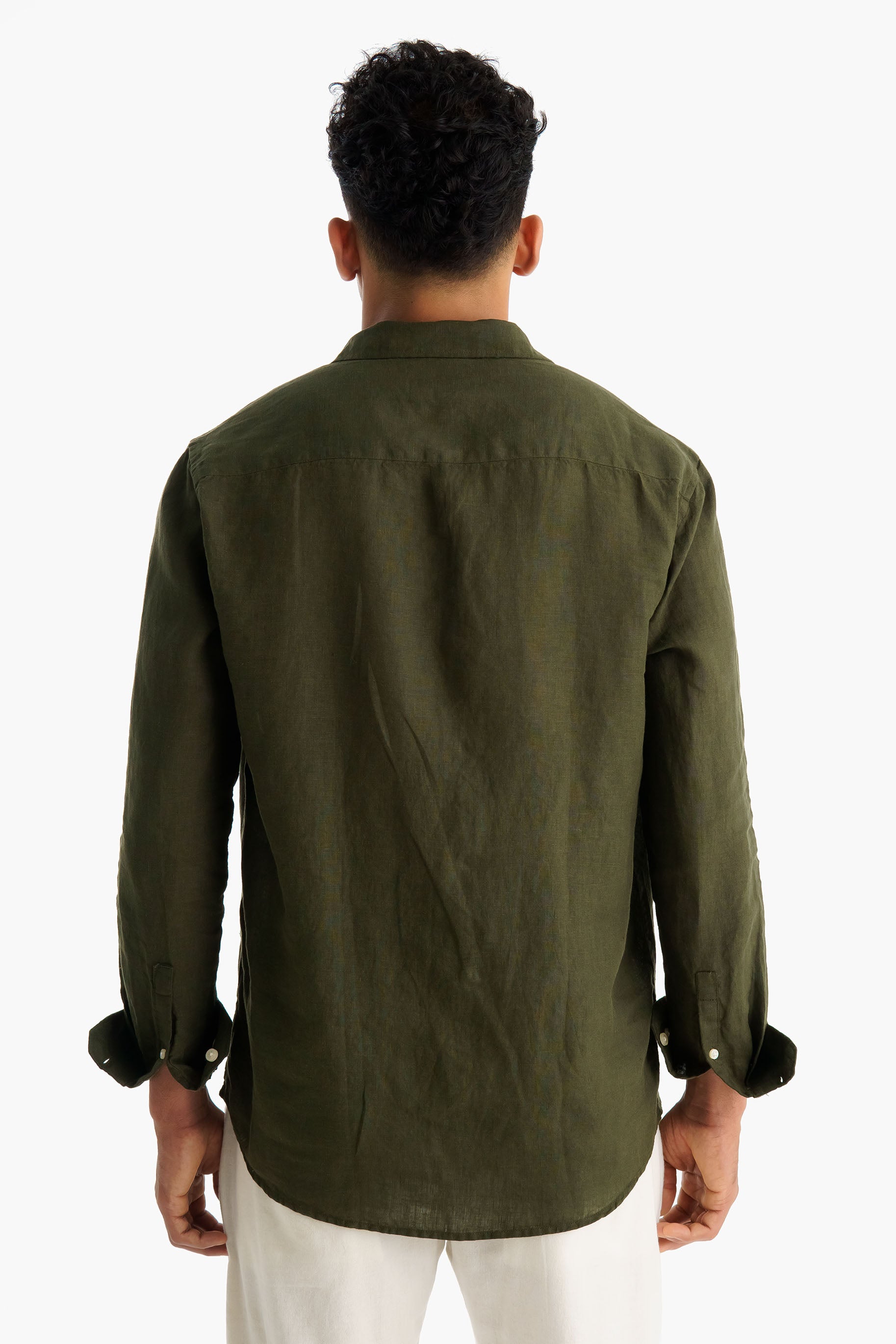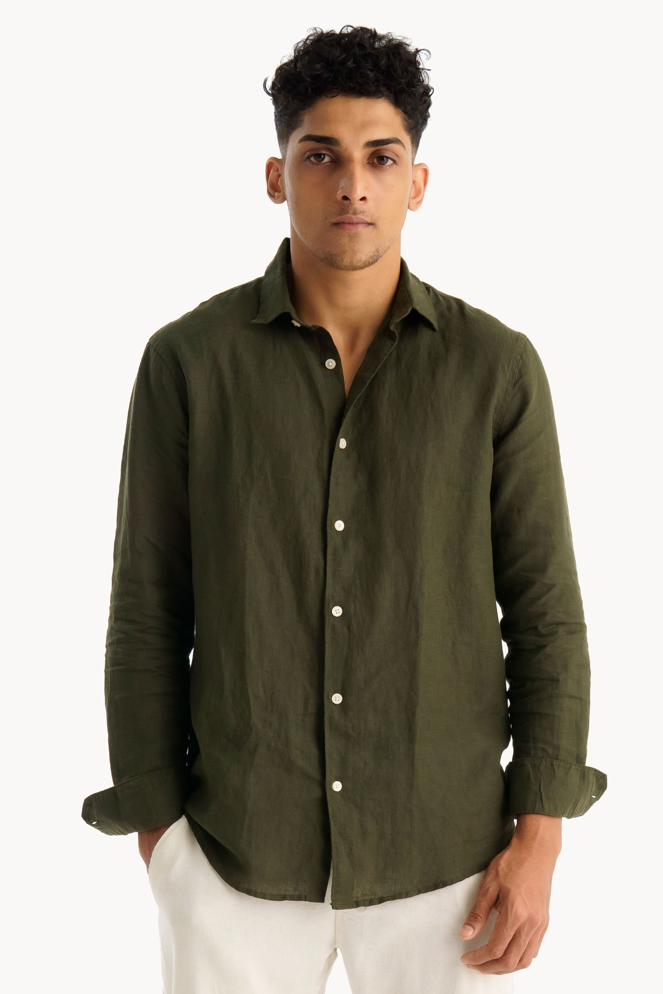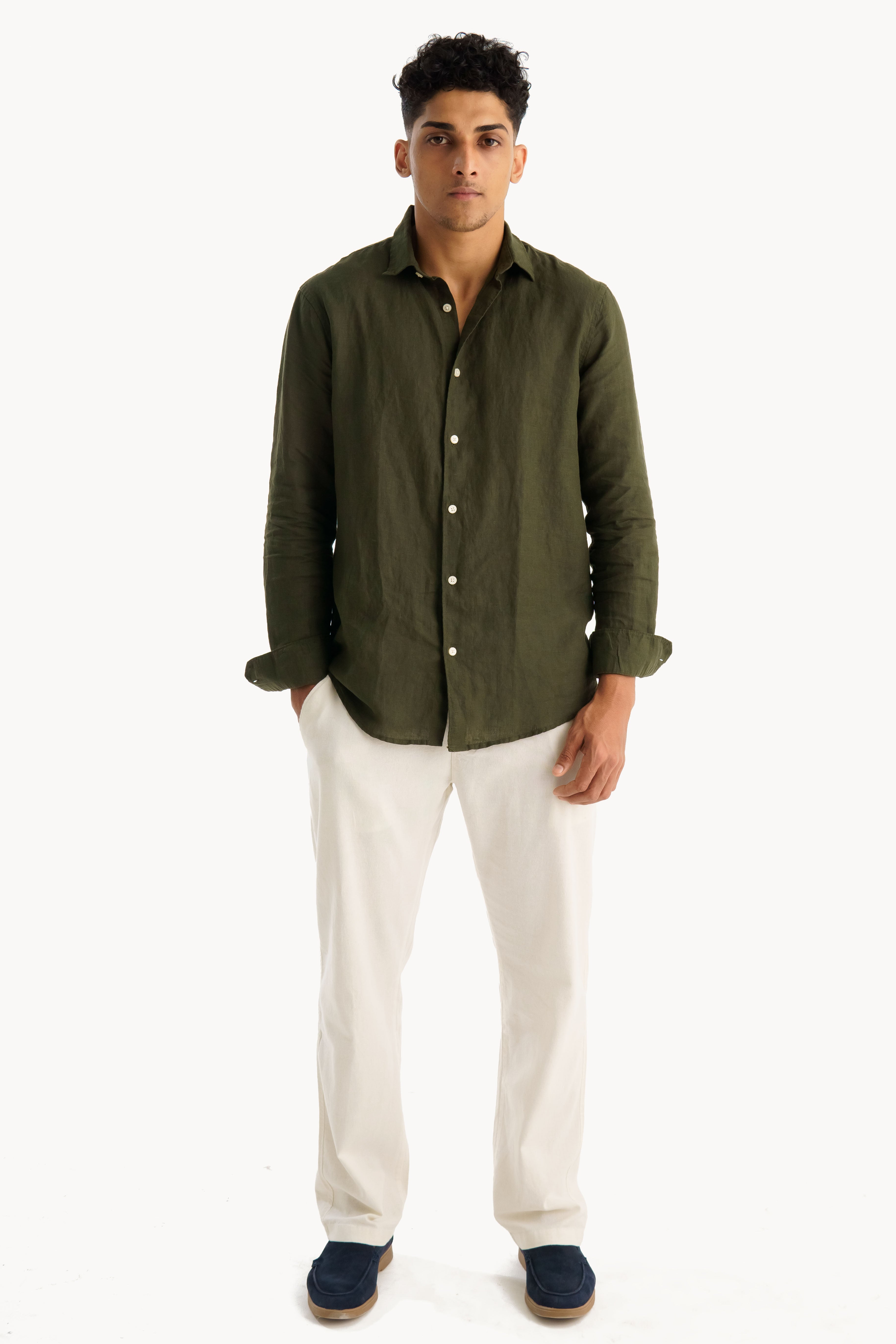 Olive Green Linen Shirt for Men | 100% Linen | Regular Fit | Old Money Style