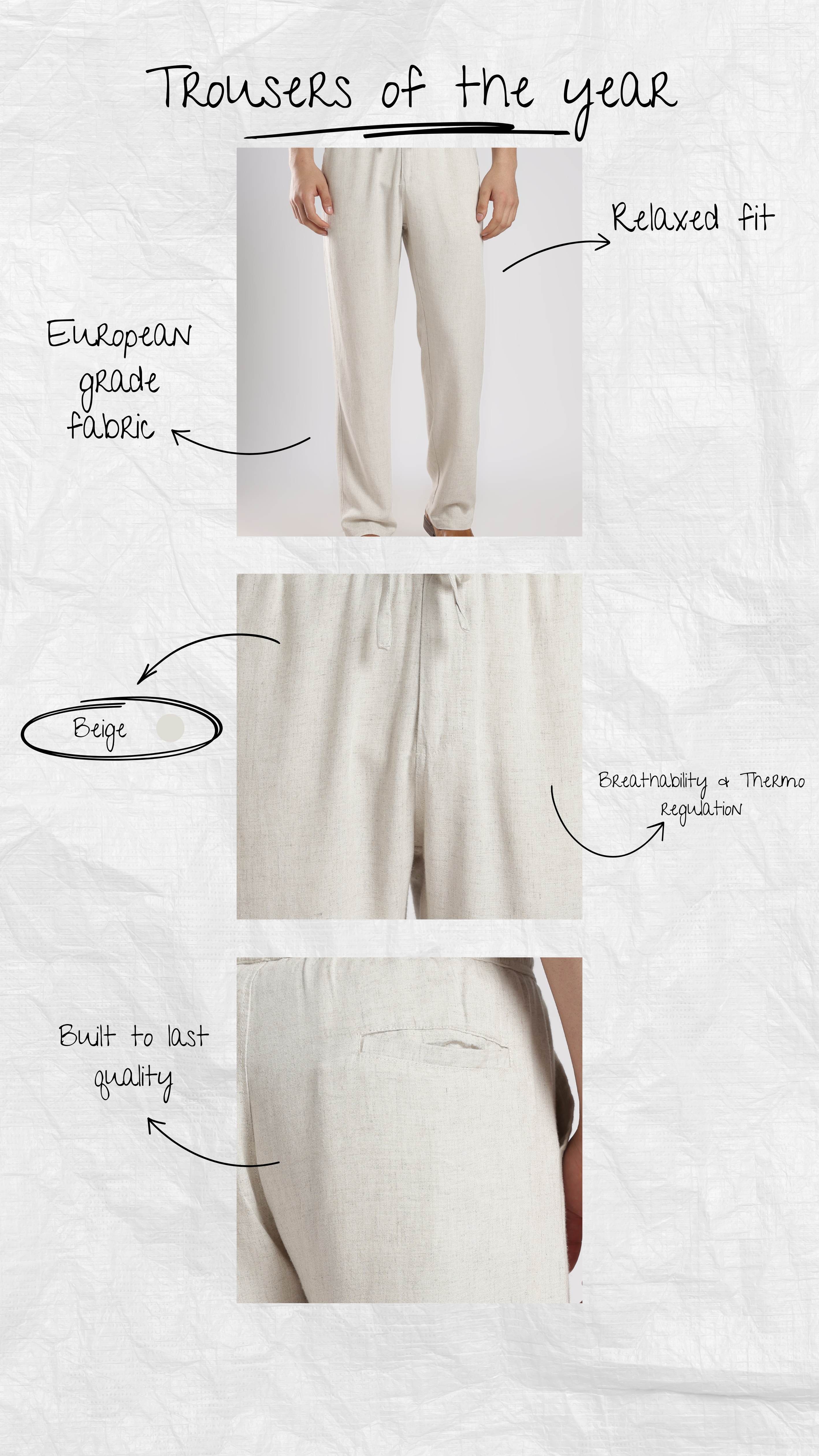 The Classic Linen Pants, designed for ultimate comfort and effortless sophistication. Made from breathable linen in a versatile beige tone, these relaxed-fit pants feature an adjustable drawstring waist for a perfect fit.