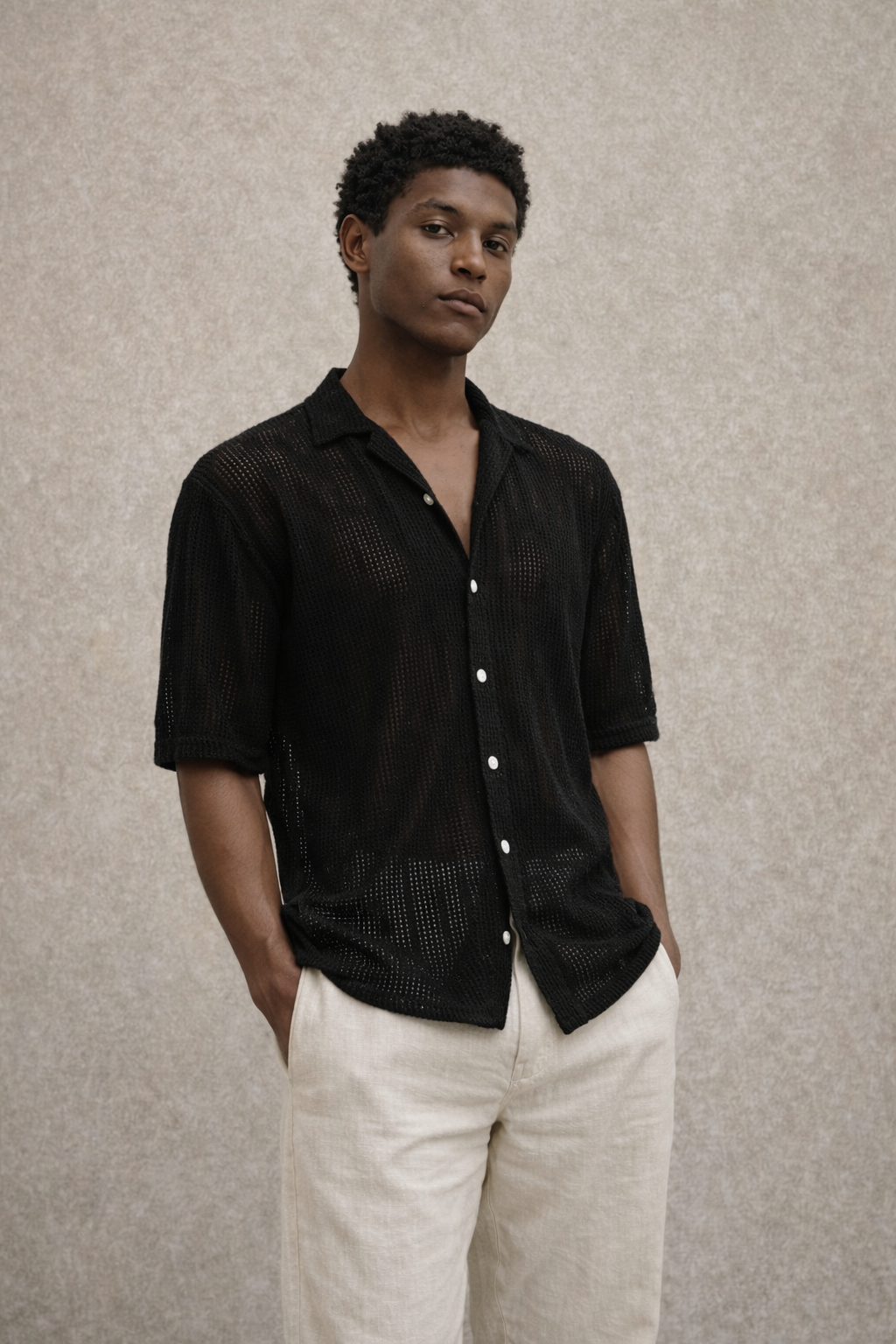 Elevate your fashion game with our Black Crochet shirt. This stylish piece features a trendy cuban collar, adding a touch of sophistication to your outfit. Made with high-quality materials, this shirt is comfortable and versatile. Perfect for any occasion, elevate your style with Black Crochet.