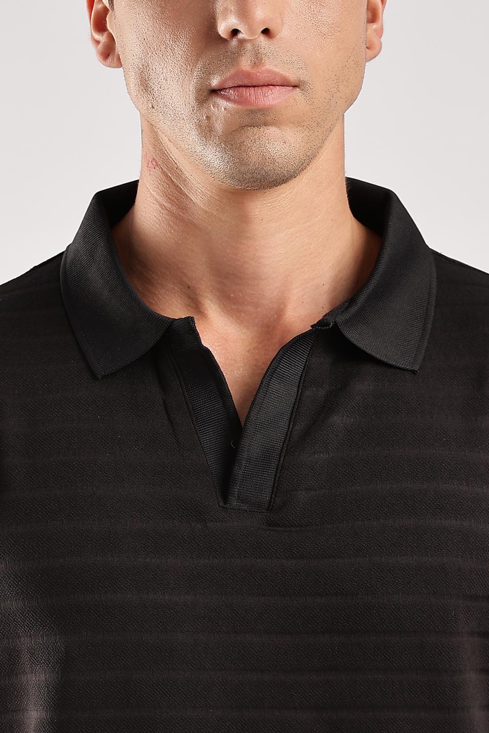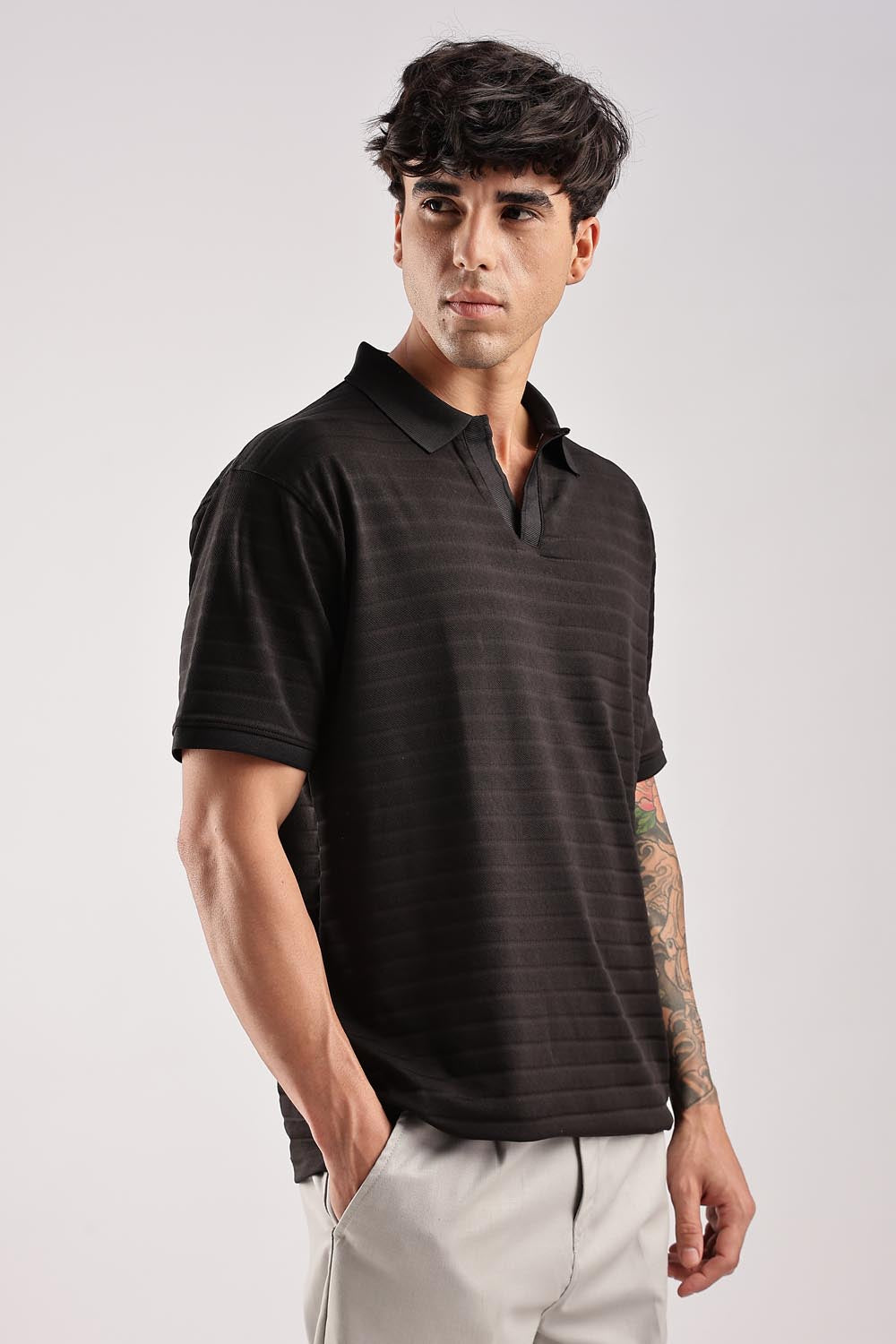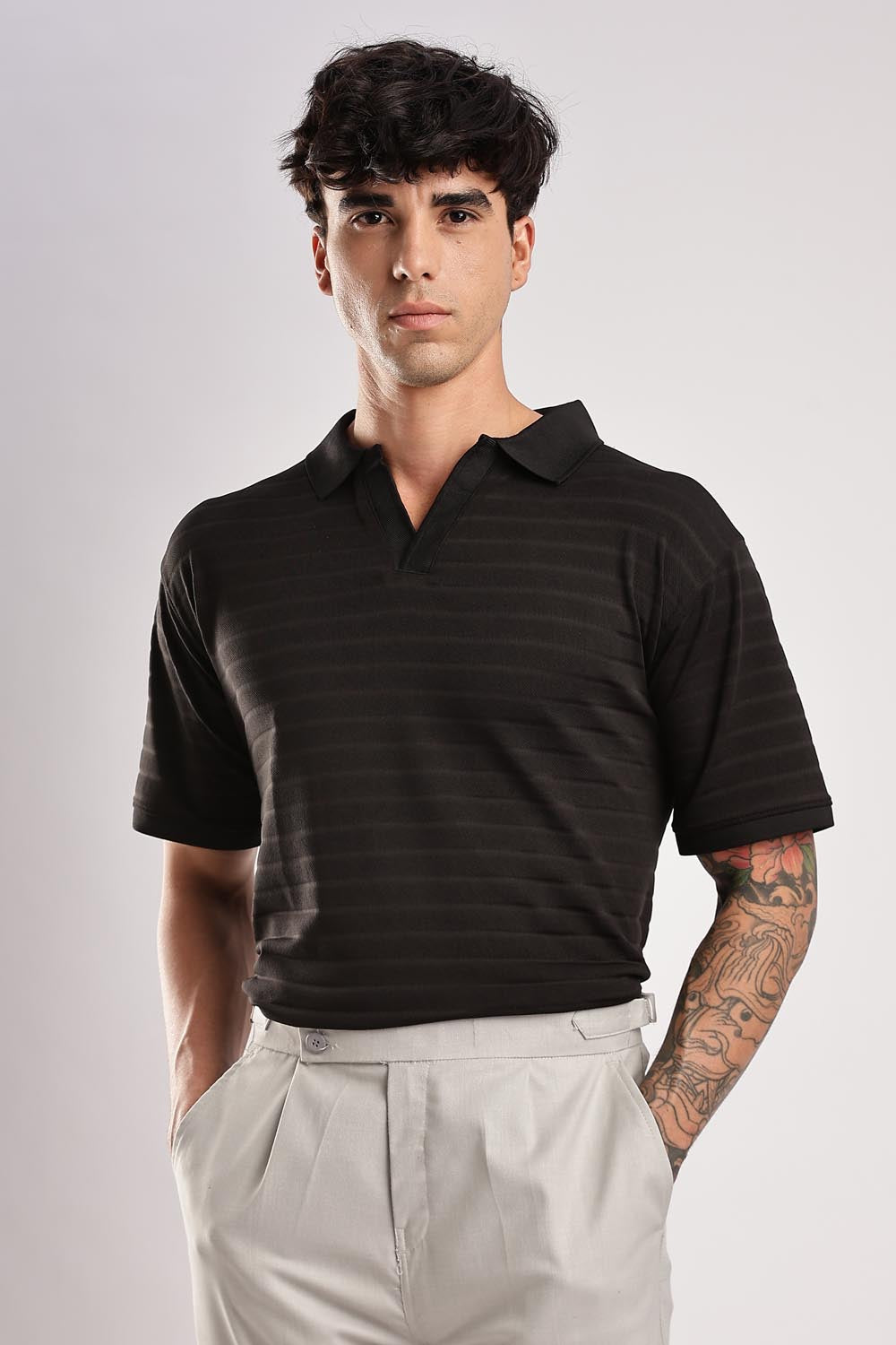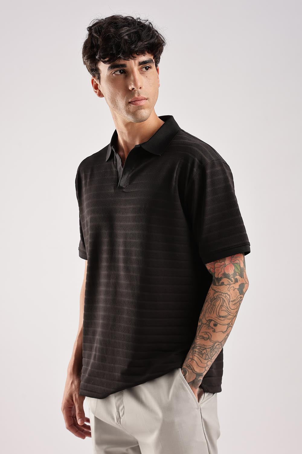 Upgrade your wardrobe with the Timeluxe Textured Black Polo, a perfect blend of sophistication and effortless style. Designed for the modern gentleman, this polo features a subtle pattern that adds depth to its classic silhouette.