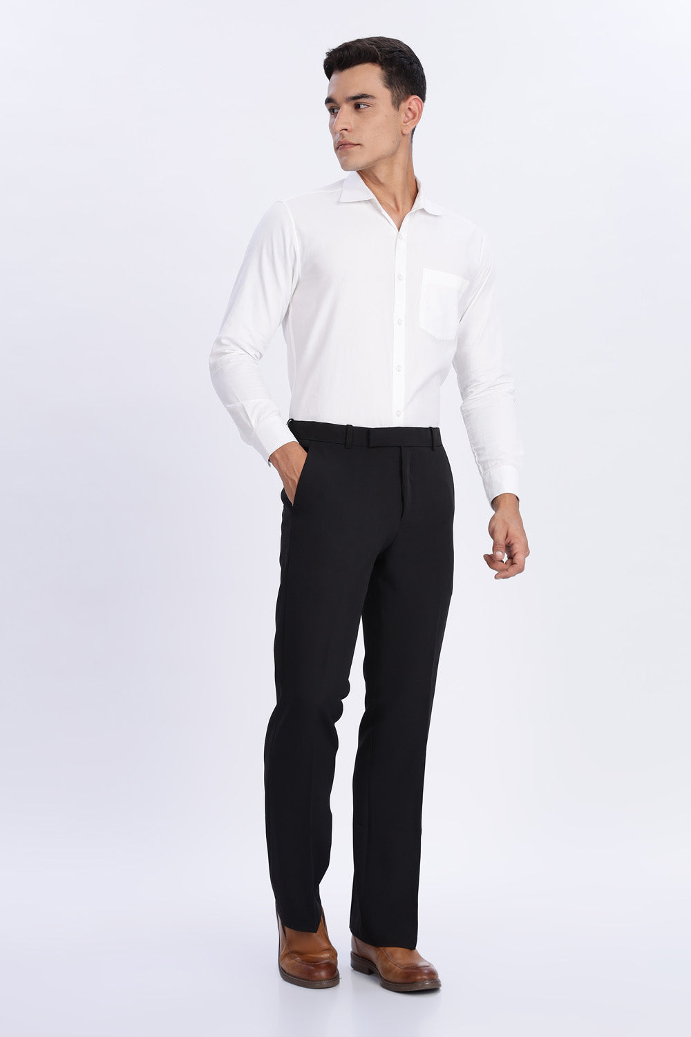 Tailored in a sleek straight fit, these Black trousers offer a clean, polished look with all-day comfort. Perfect for both work and smart casual wear, they pair effortlessly with shirts and loafers.