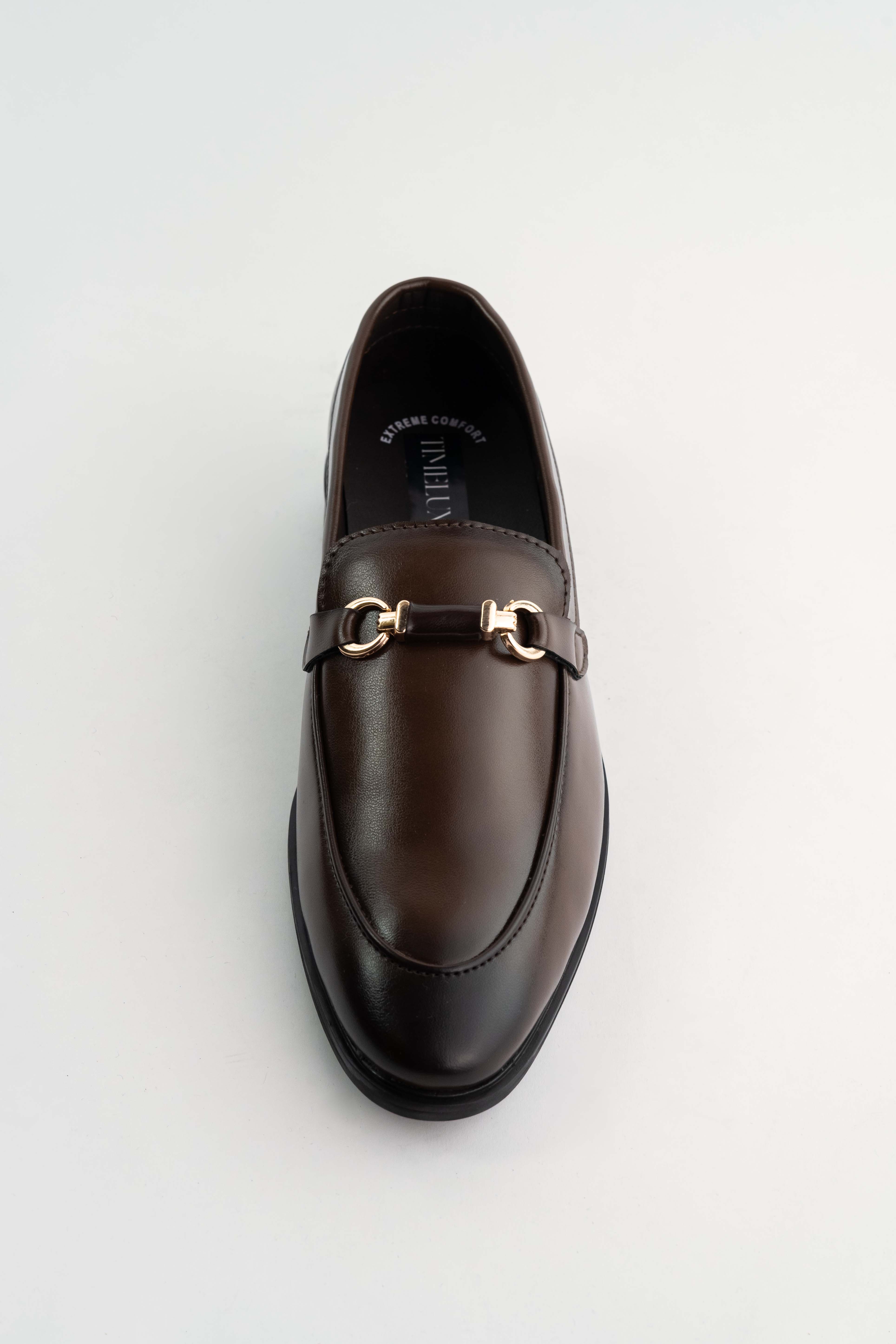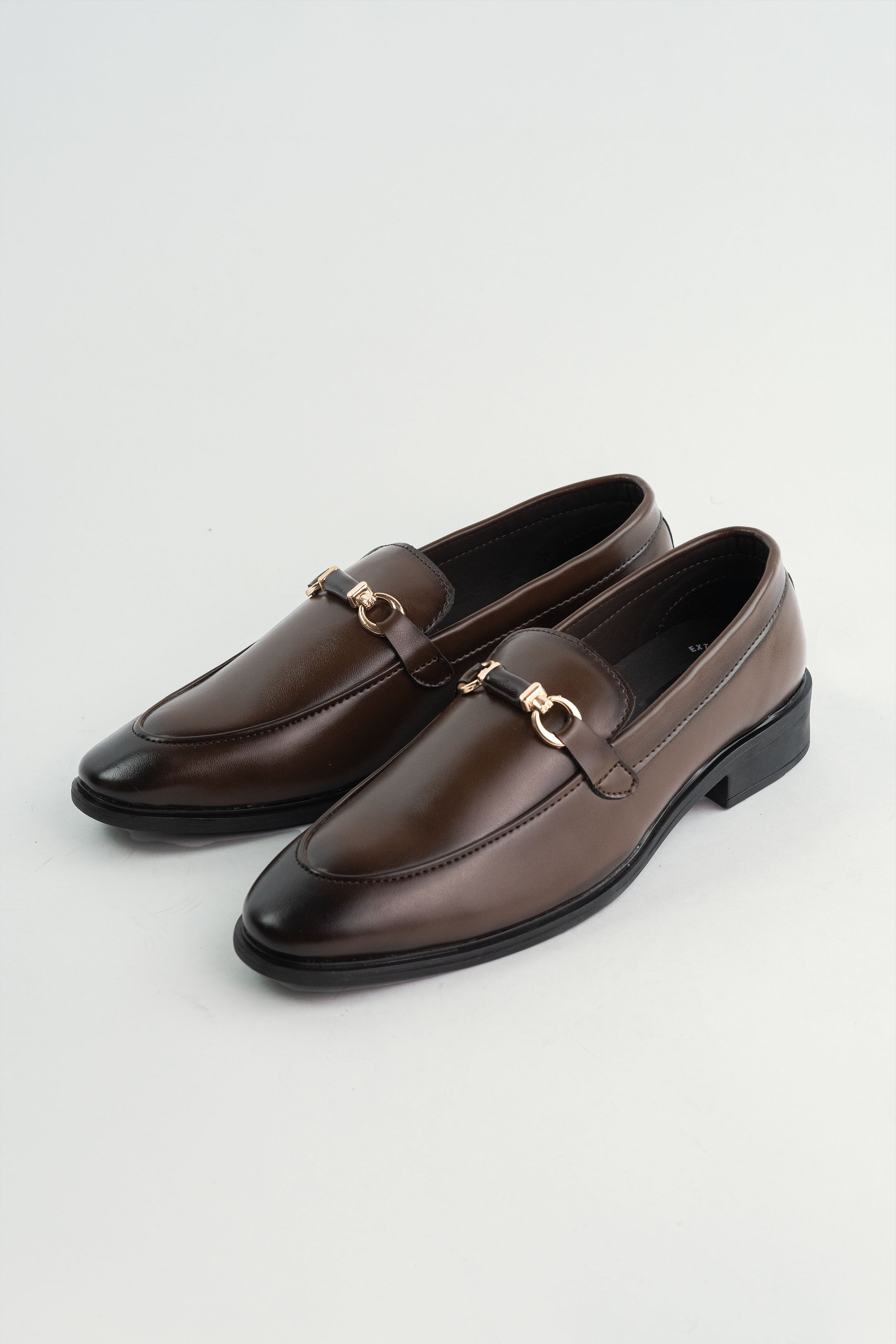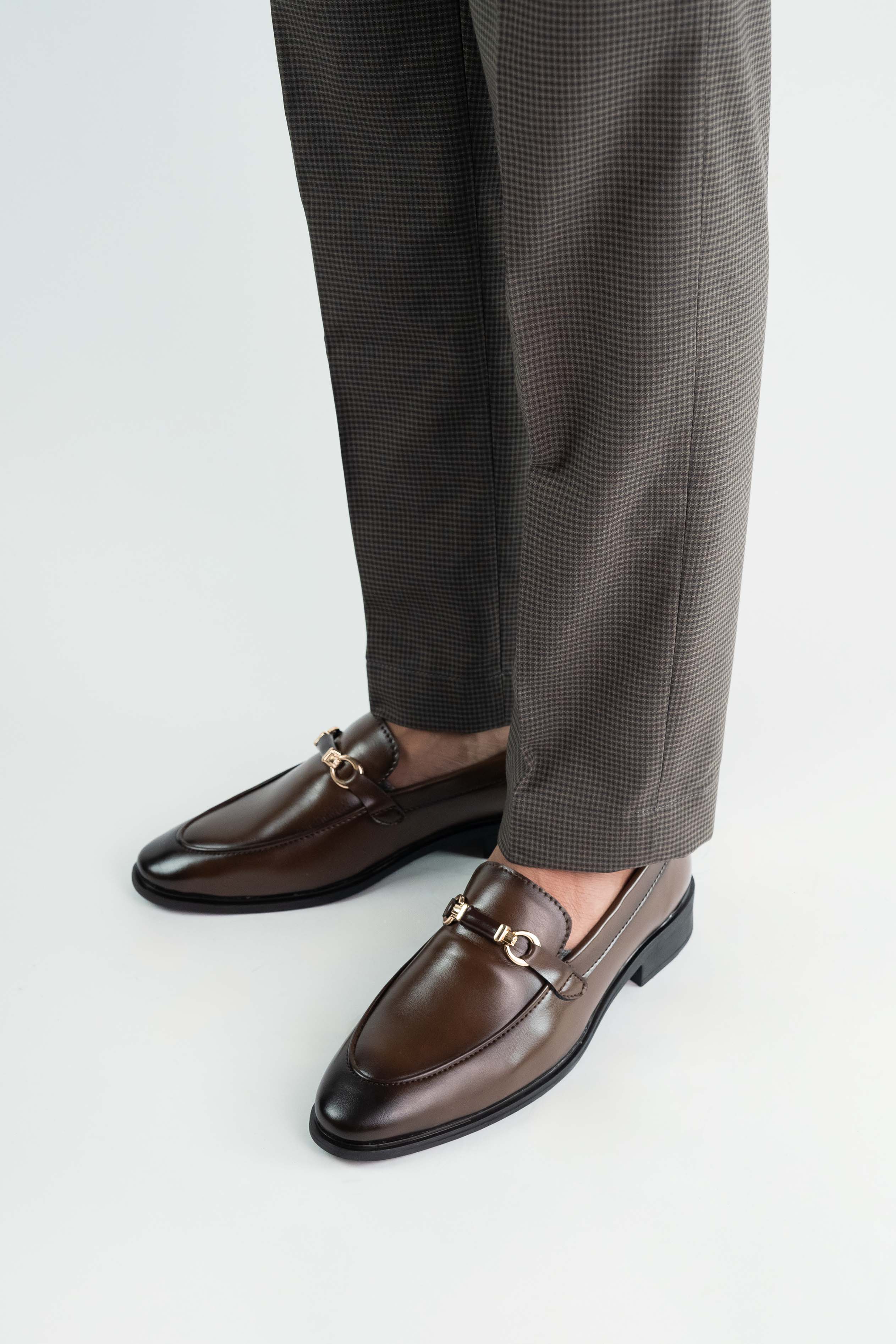 Elegant and timeless, these brown leather loafers feature a polished gold-tone bit applique for a refined finish. Designed for both style and comfort, they are perfect for casual and semi-formal occasions