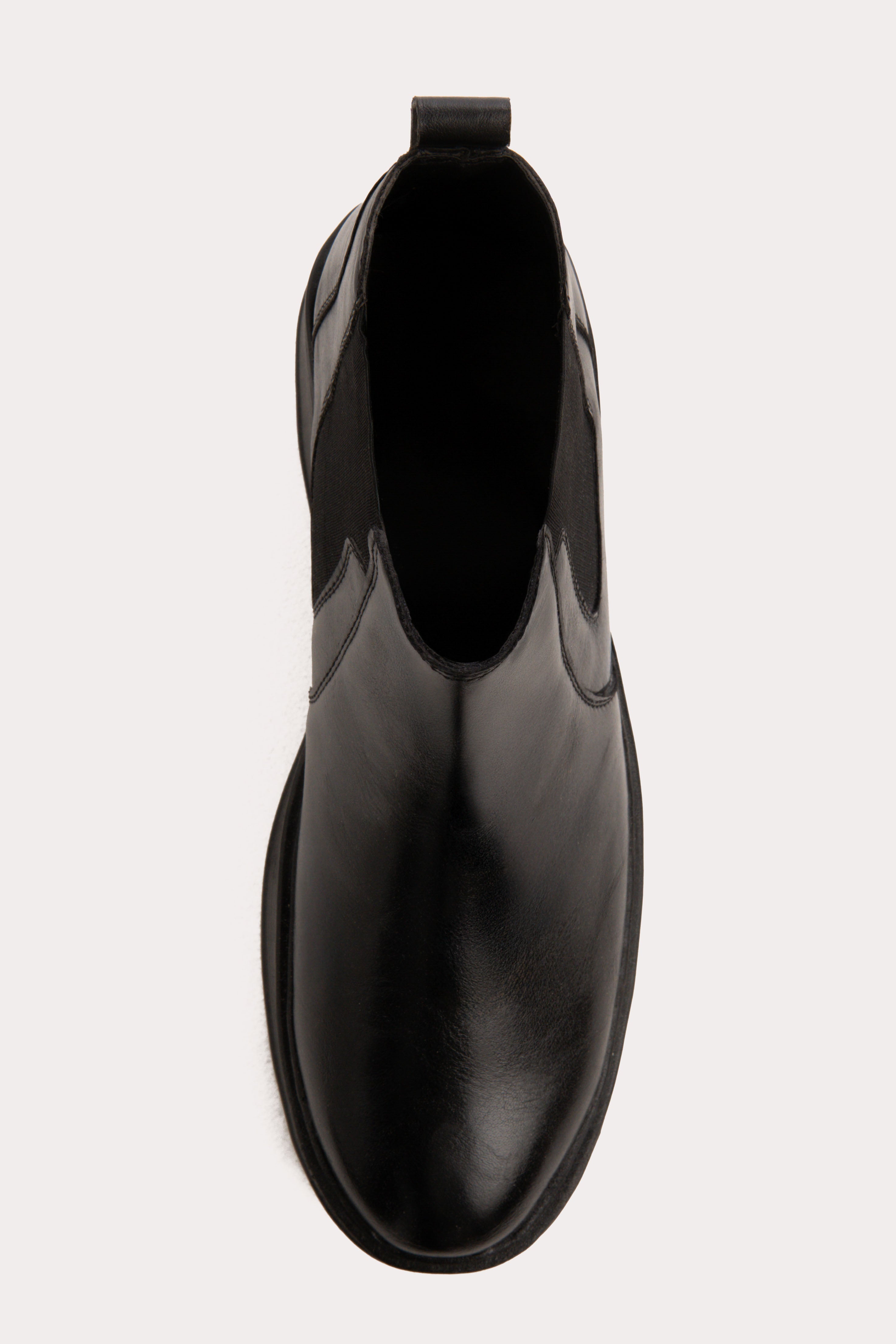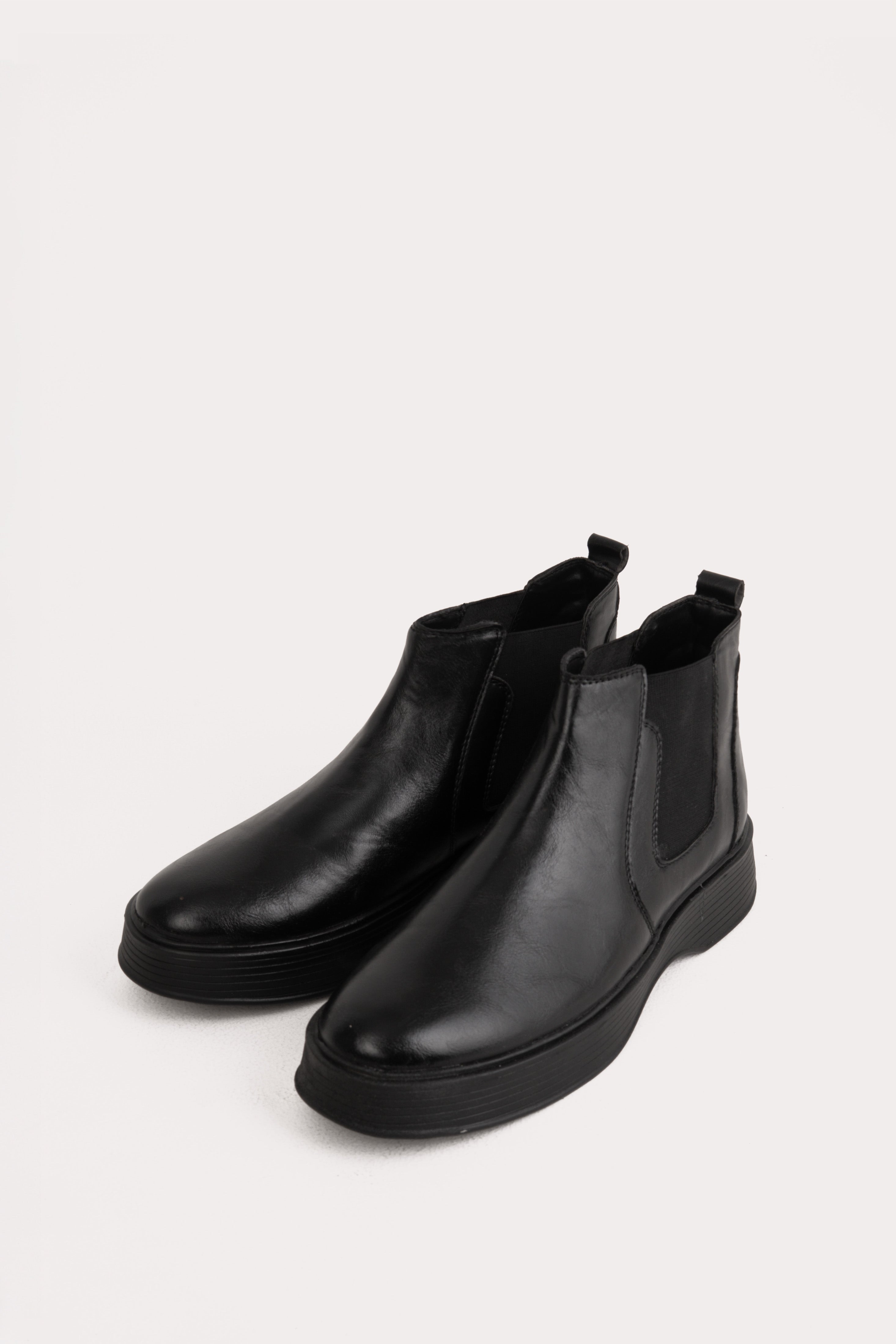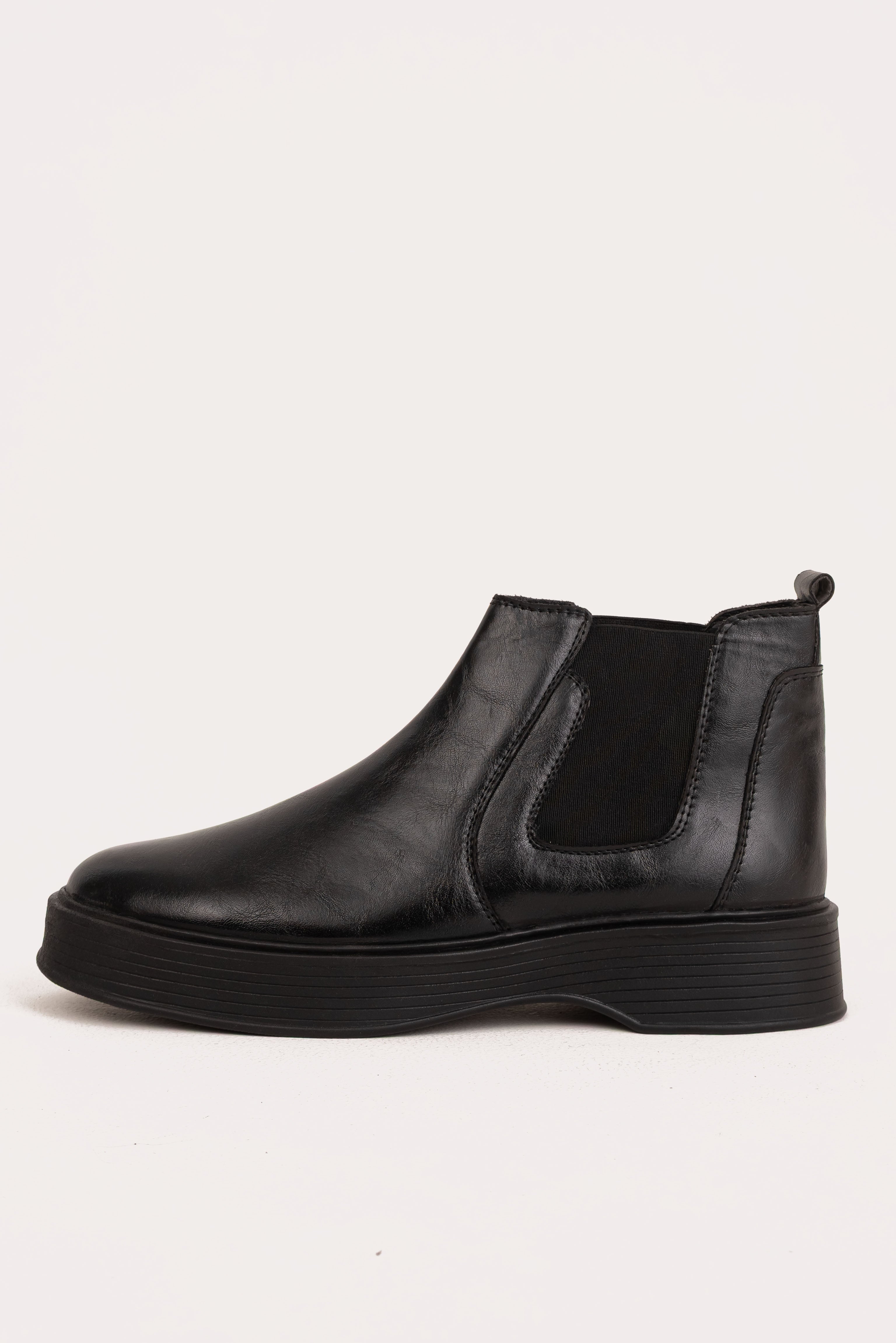 Black chunky Chelsea boots featuring elastic side panels and a thick platform sole. Designed with a rounded toe and bold profile for a modern look. Comfortable, versatile, and perfect for adding edge to everyday outfits.