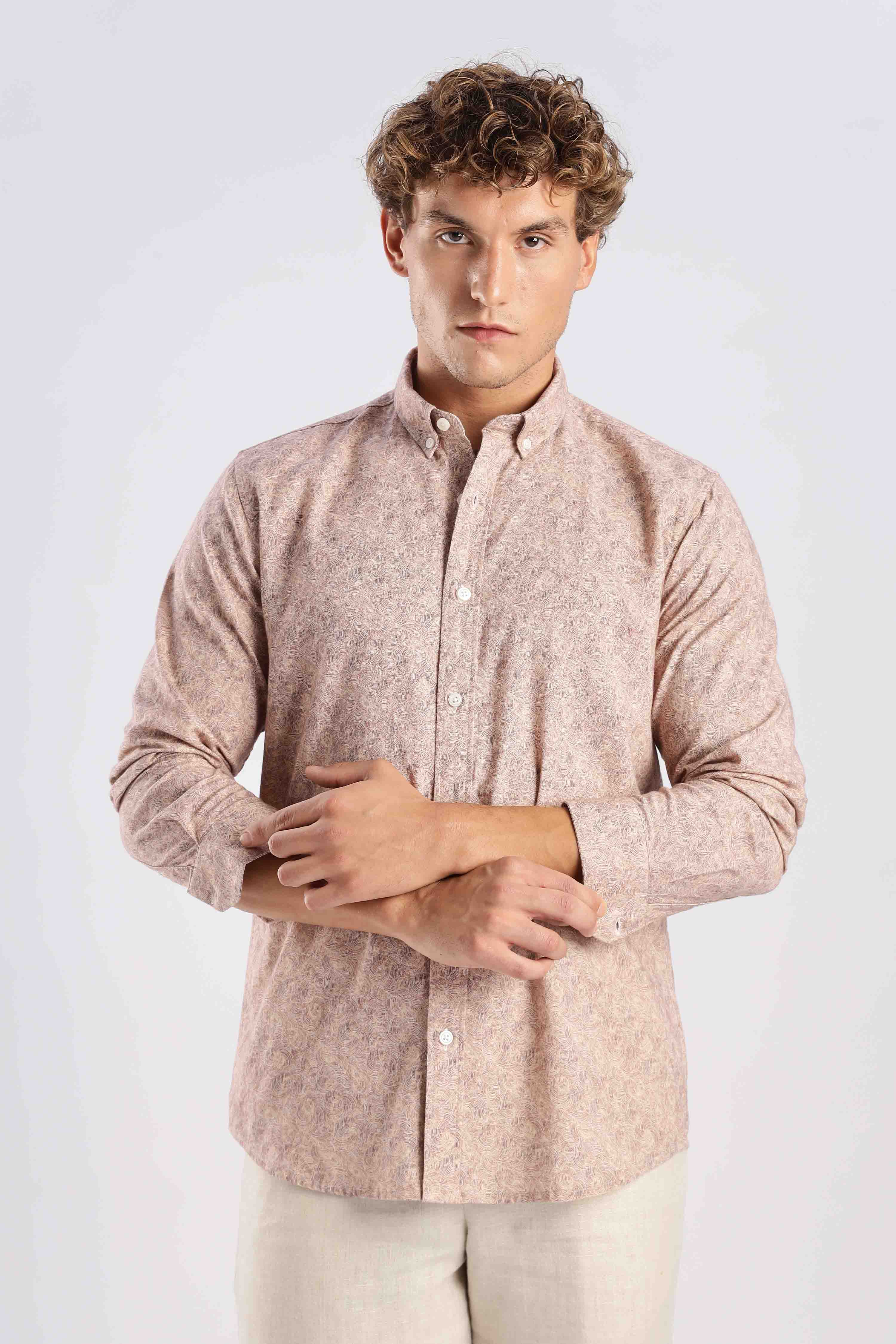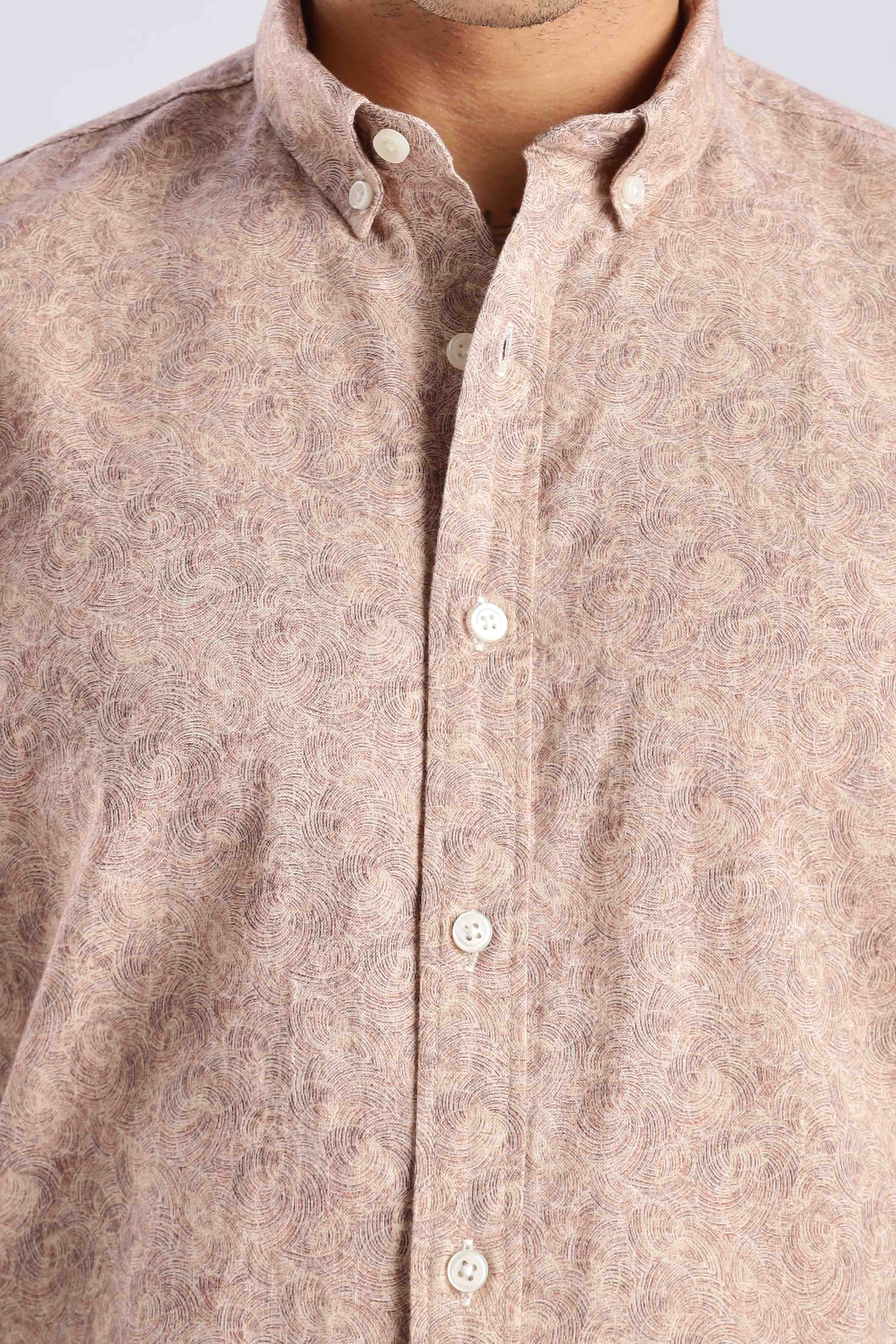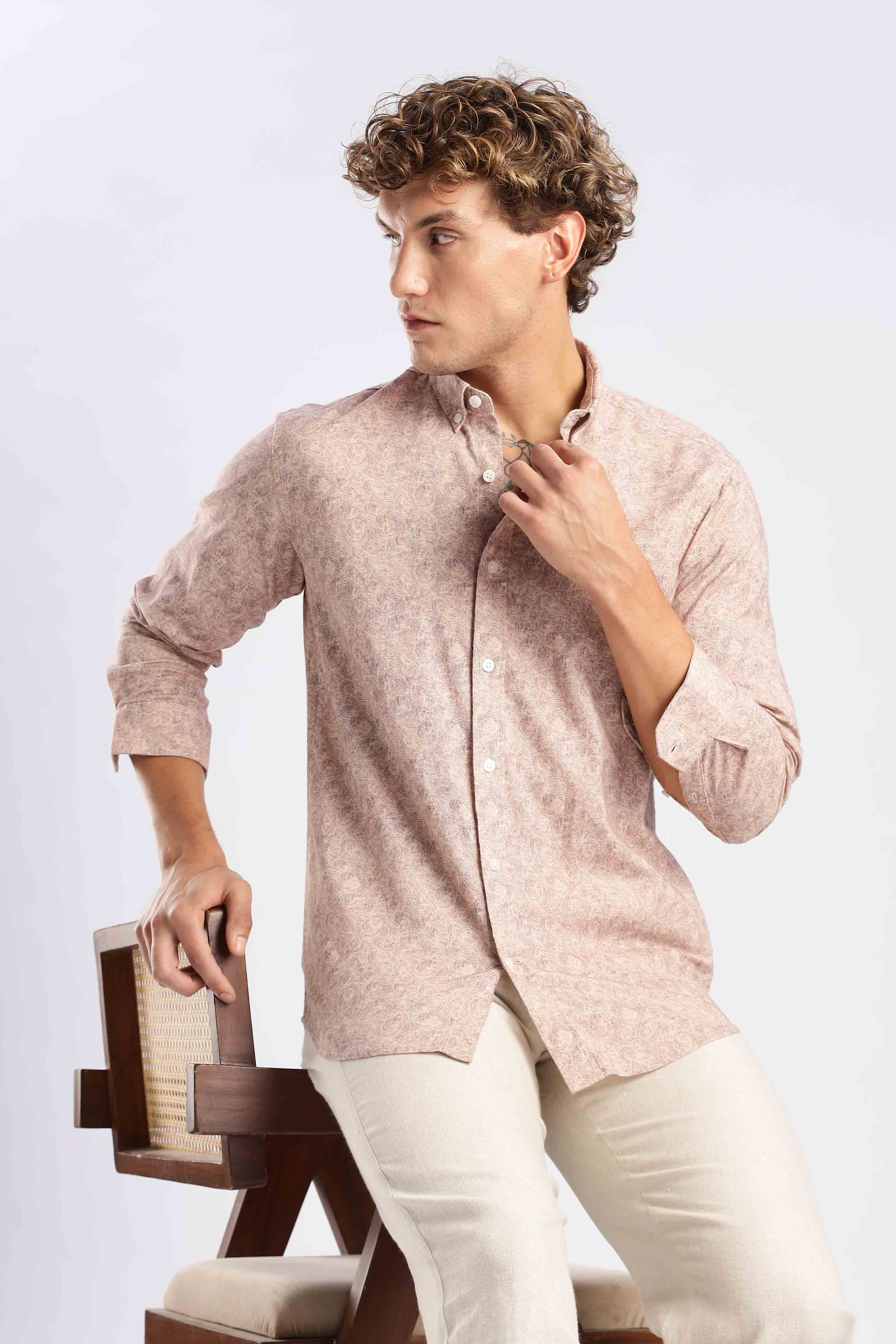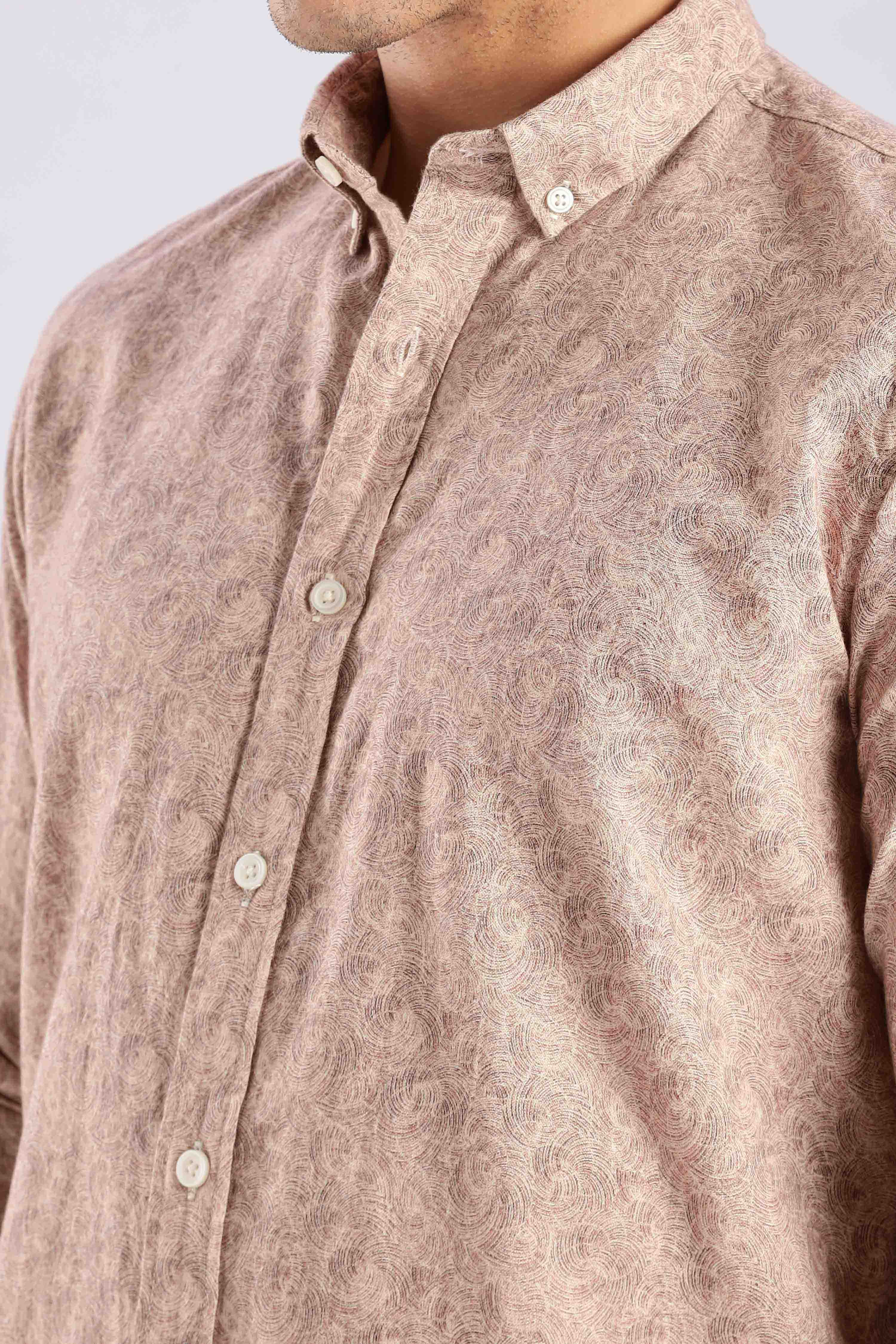 Expertly crafted with a breathable linen blend fabric, our Dusty Rose Spiral Shirt offers both style and comfort. Stay cool and look chic with this versatile piece that can be dressed up or down for any occasion.