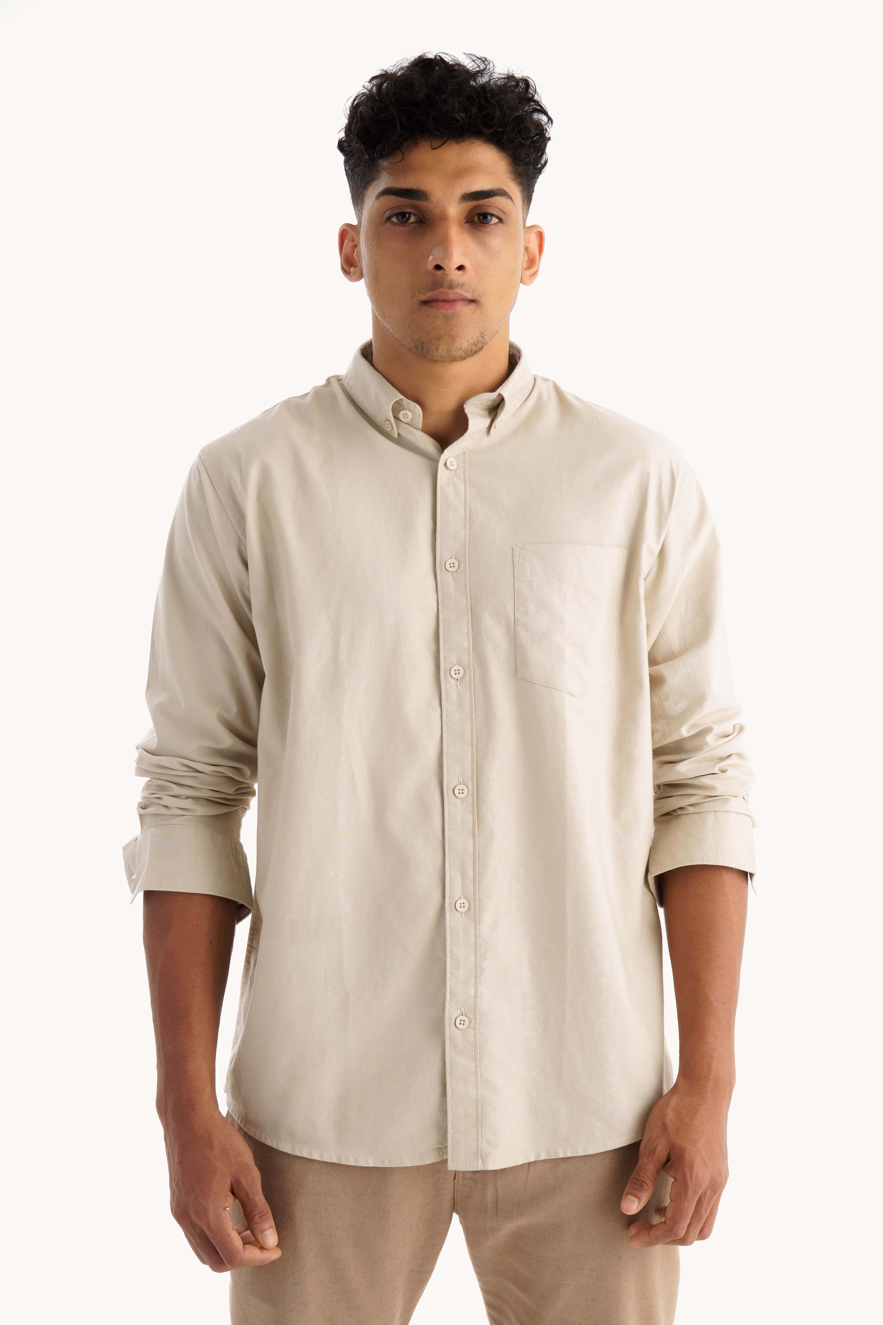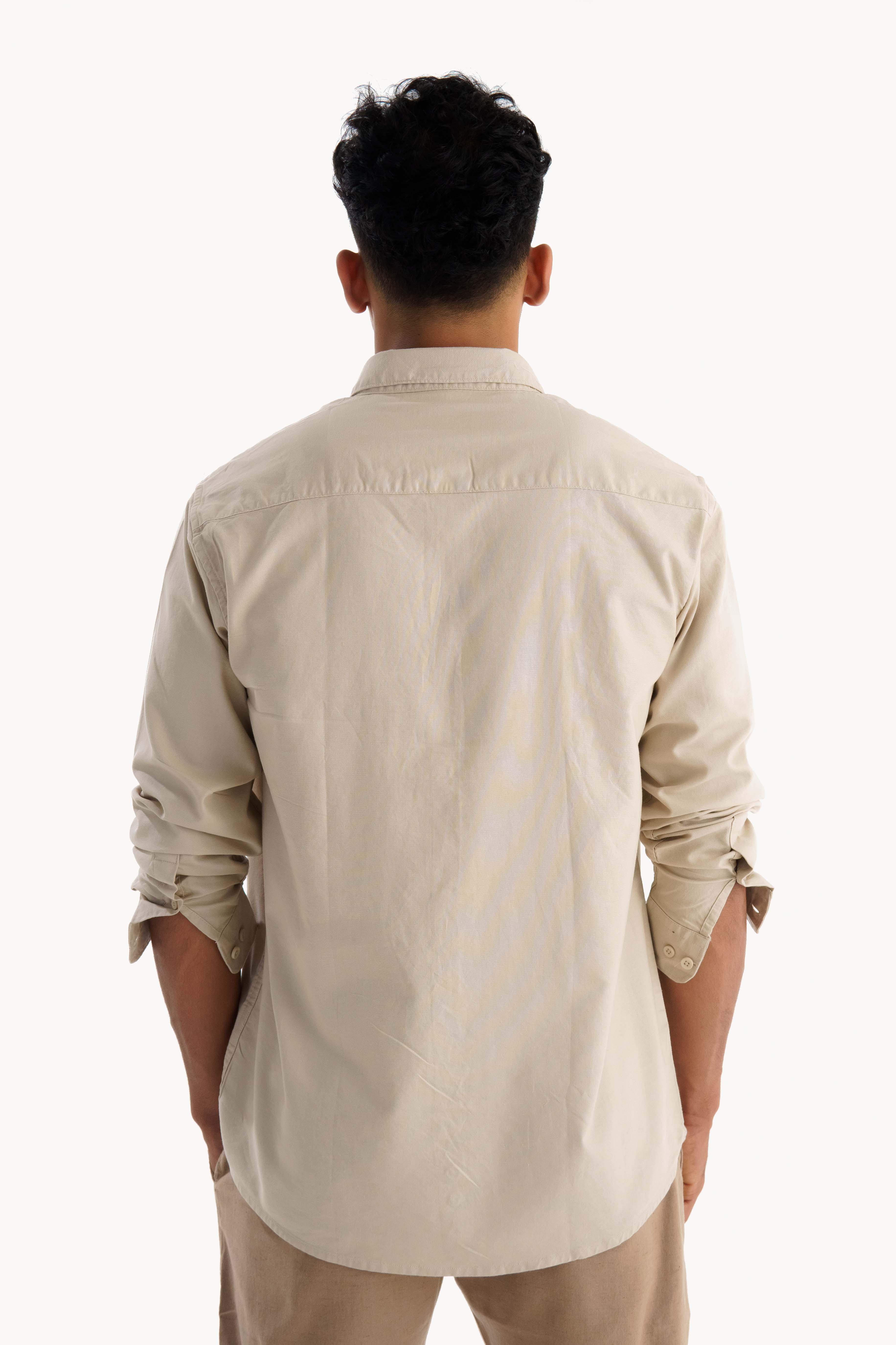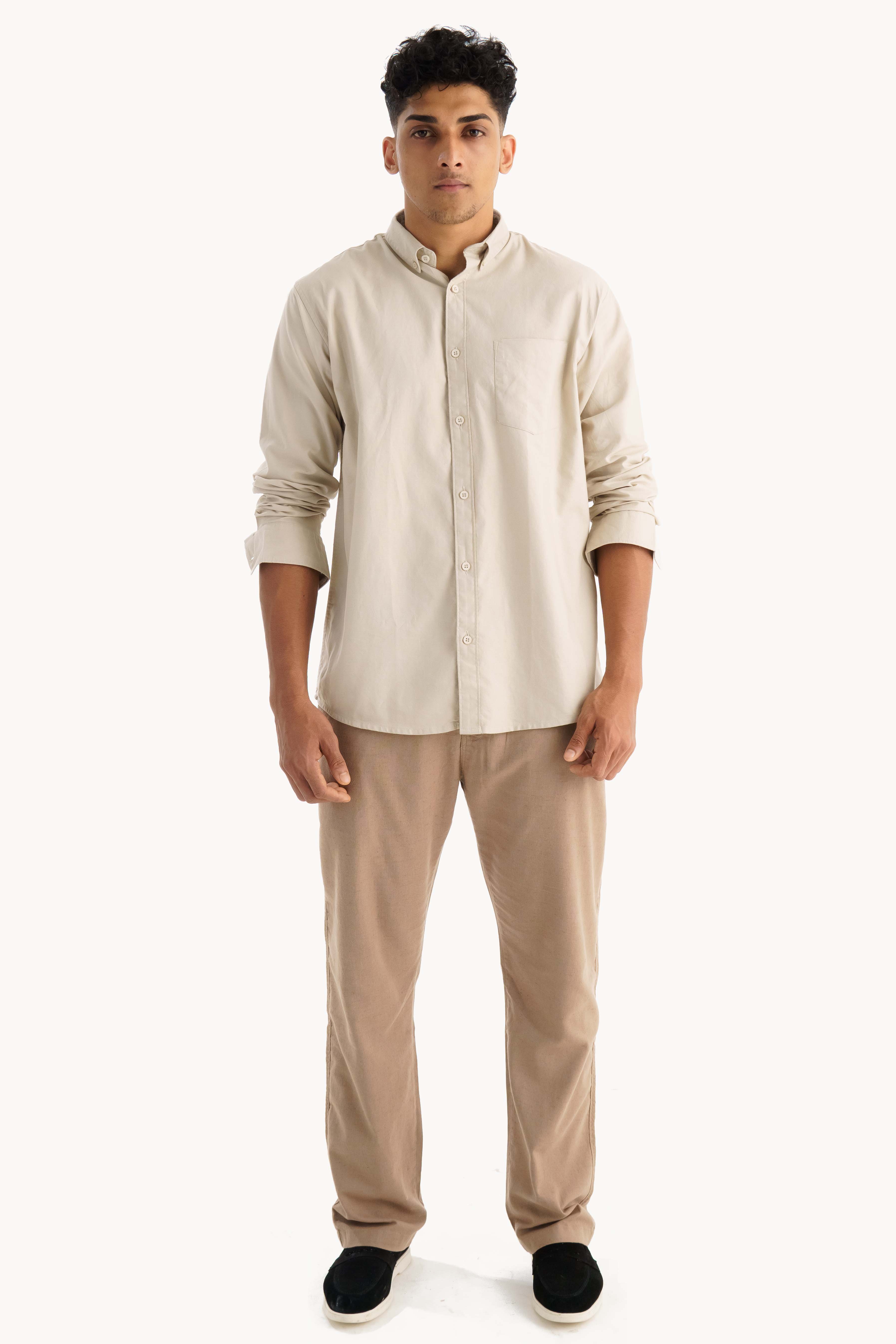 Light Cream Oxford Shirt for Men | Regular Fit | Classic Neutral | Old Money Style Elegance