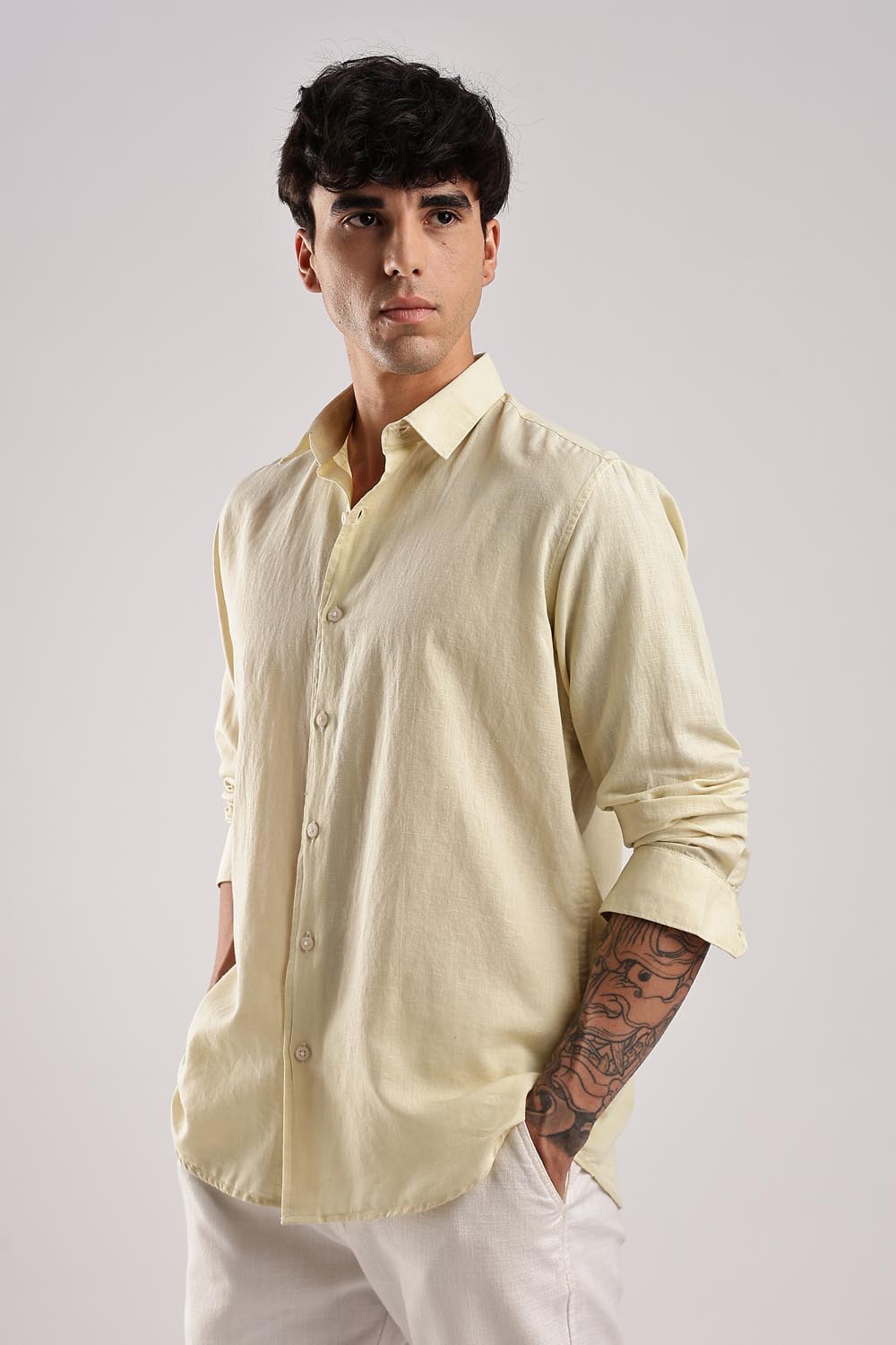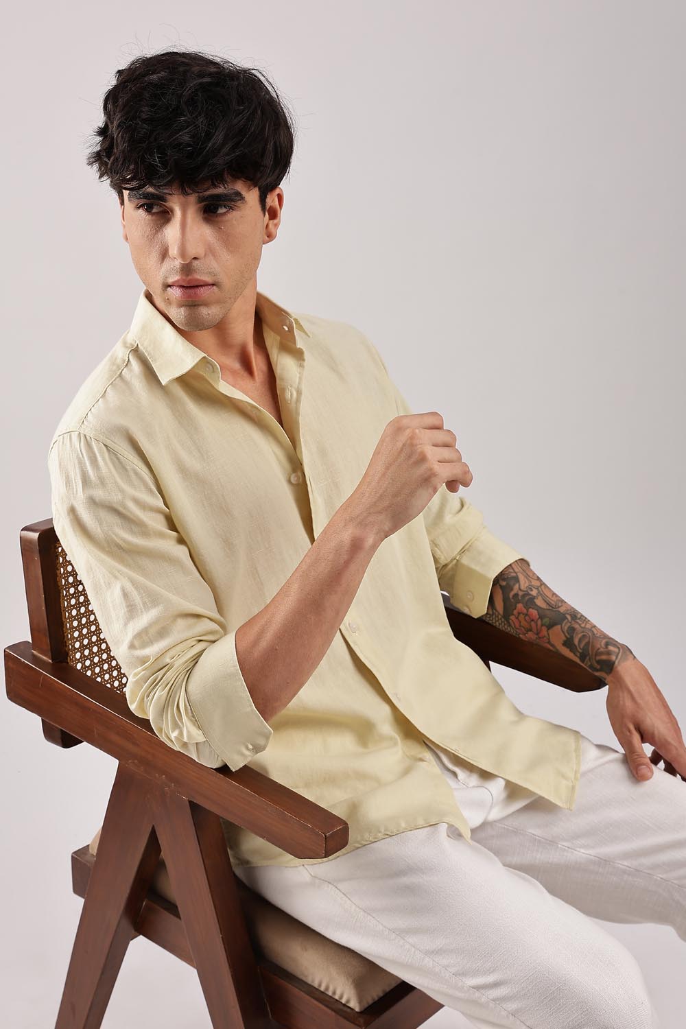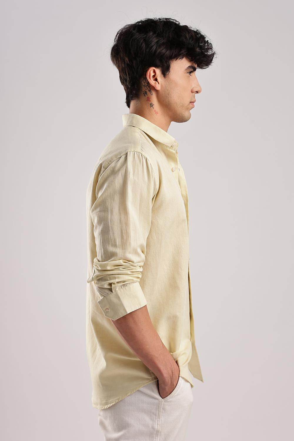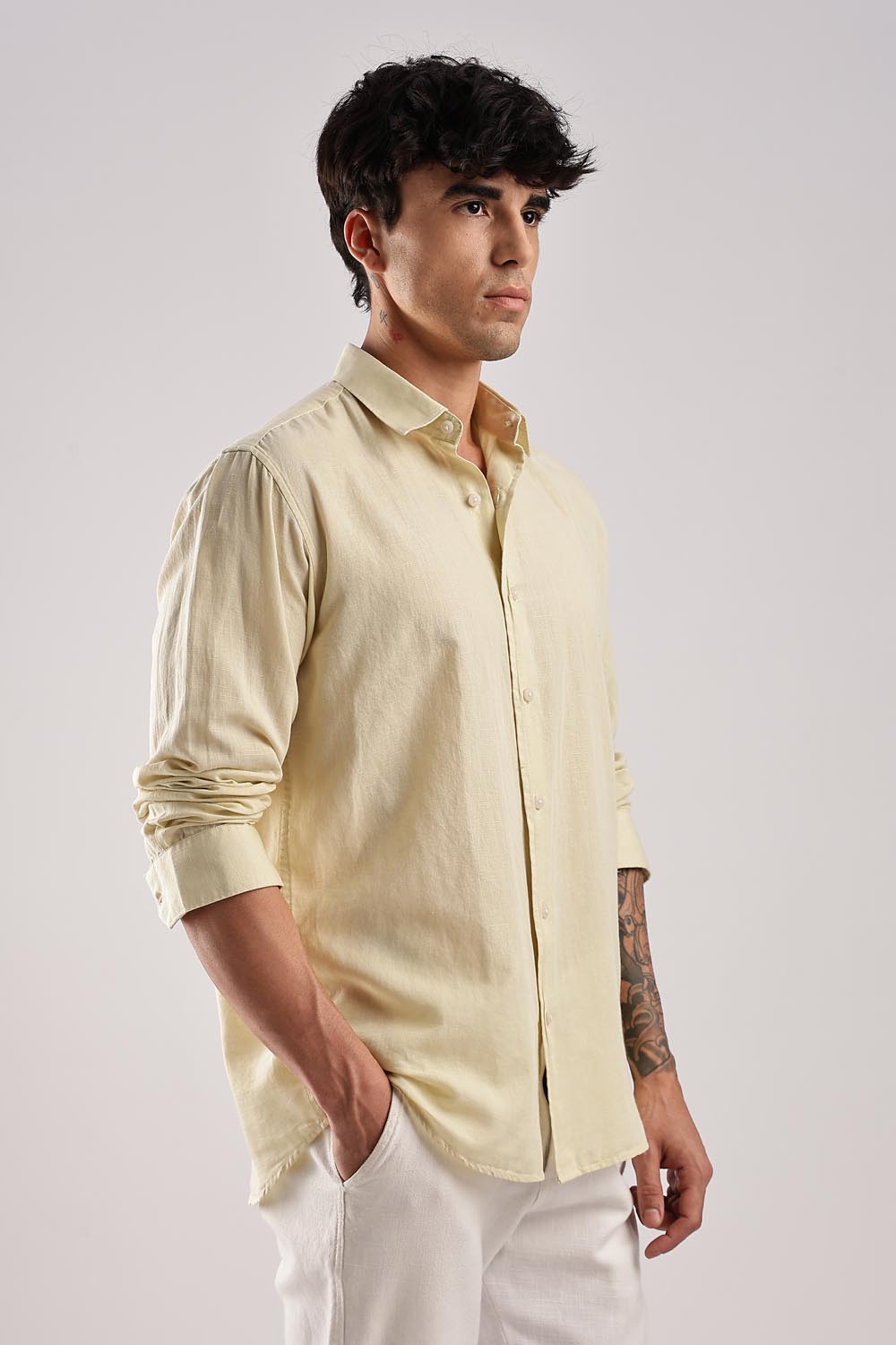 Elevate your wardrobe with the understated elegance of our Yellow Linen Blend Shirt. Designed for those who value timeless style, it embodies the quiet luxury of heritage craftsmanship