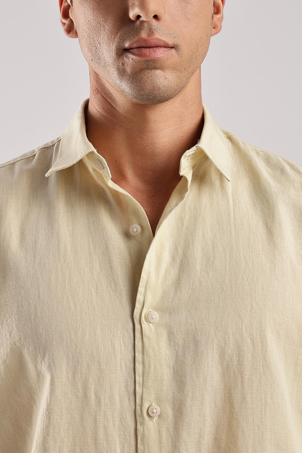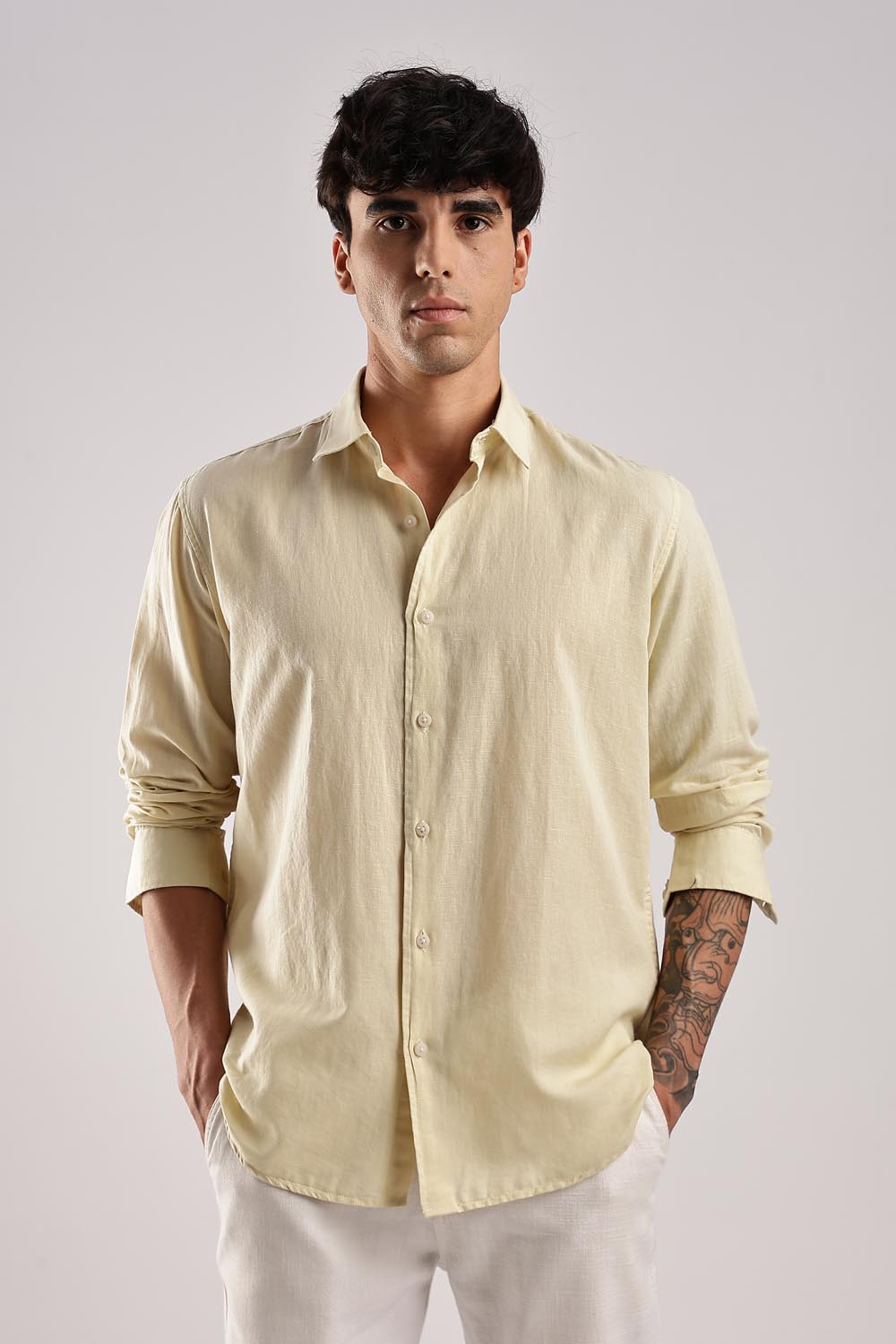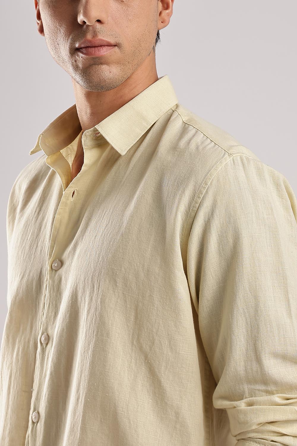Elevate your wardrobe with the understated elegance of our Yellow Linen Blend Shirt. Designed for those who value timeless style, it embodies the quiet luxury of heritage craftsmanship