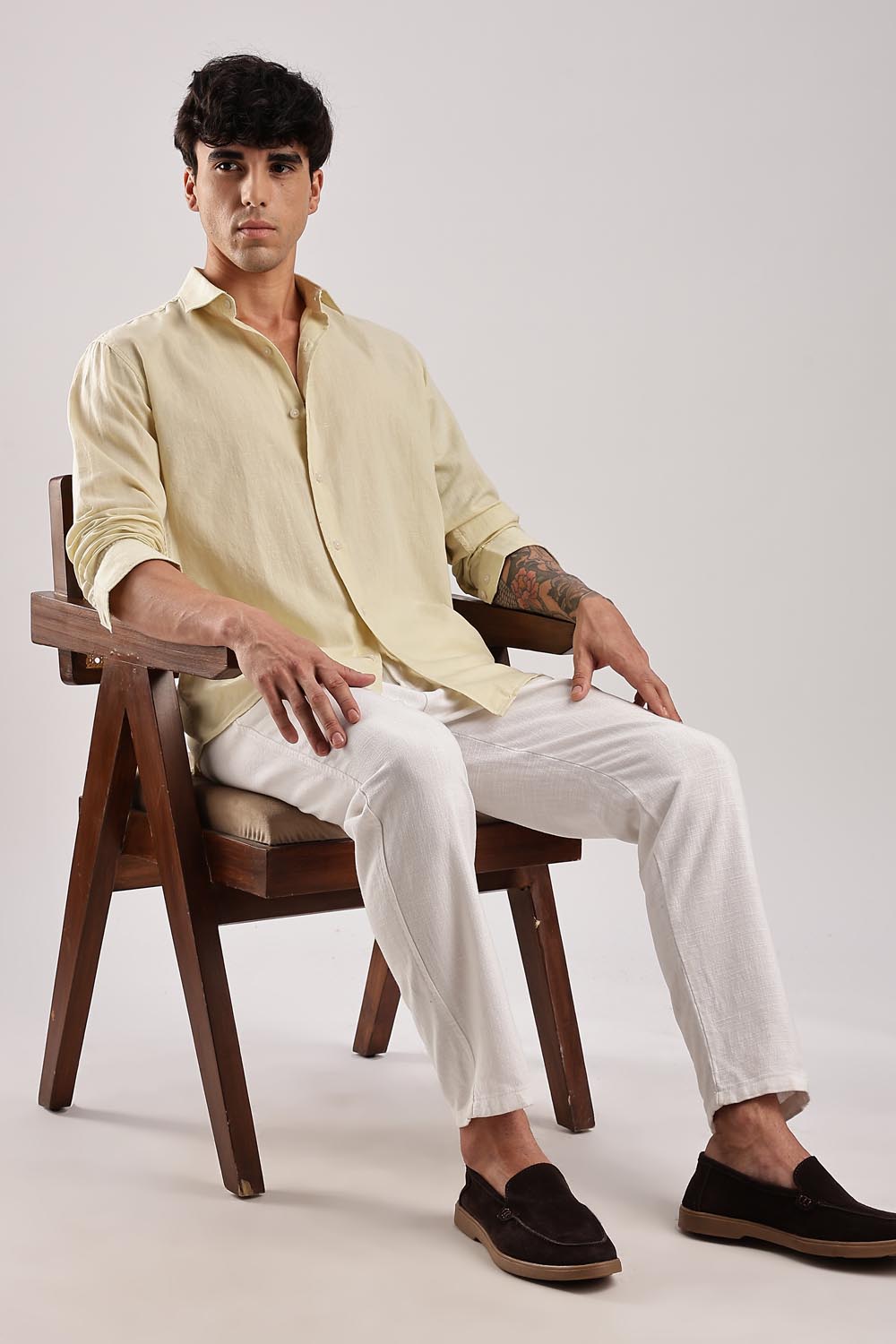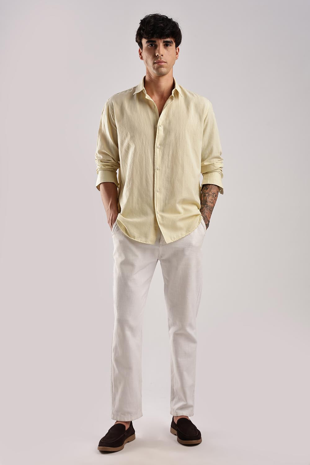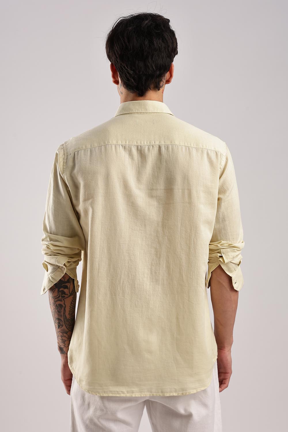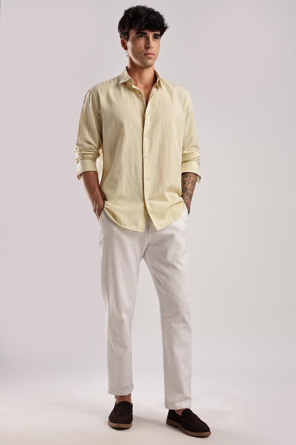 Elevate your wardrobe with the understated elegance of our Yellow Linen Blend Shirt. Designed for those who value timeless style, it embodies the quiet luxury of heritage craftsmanship