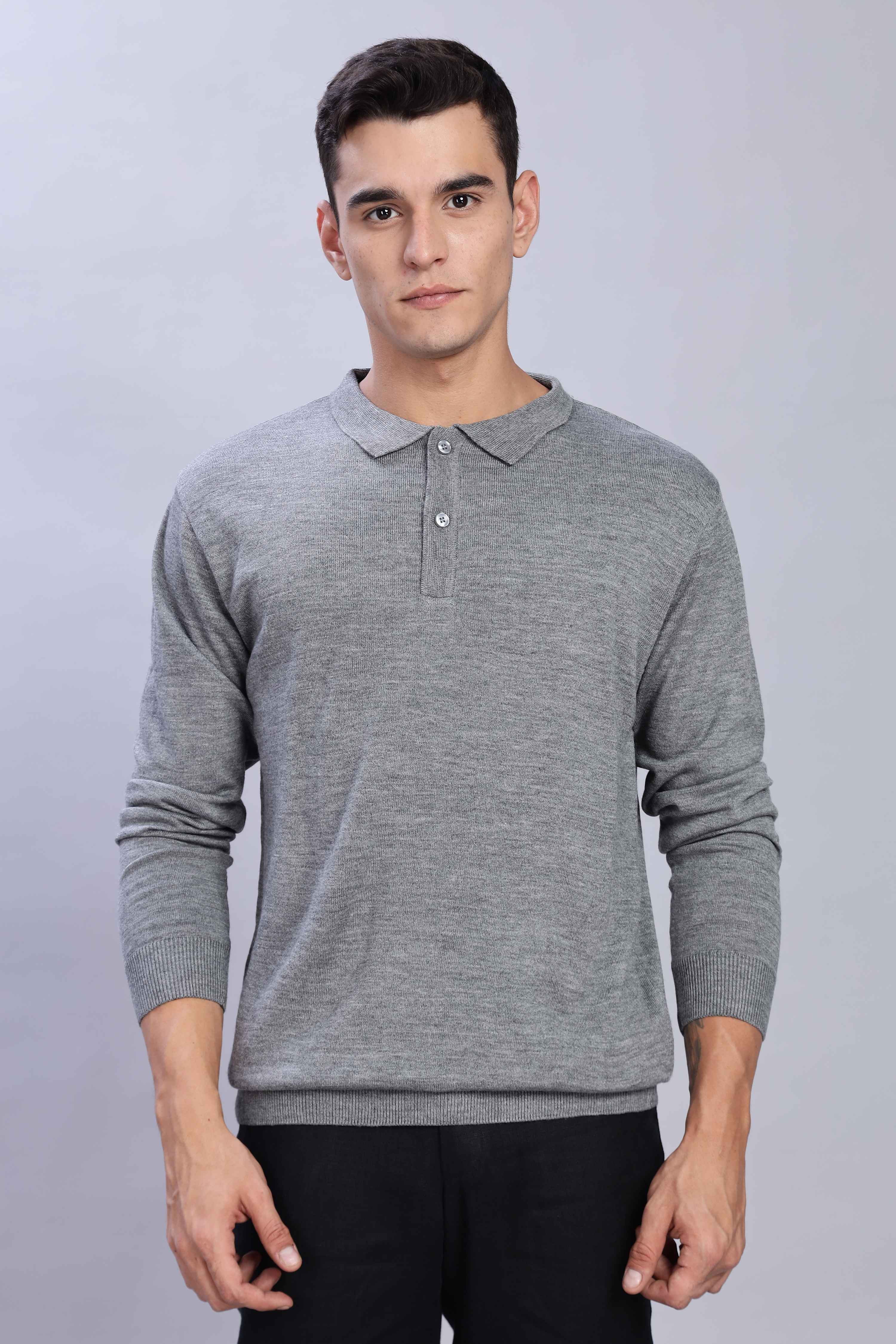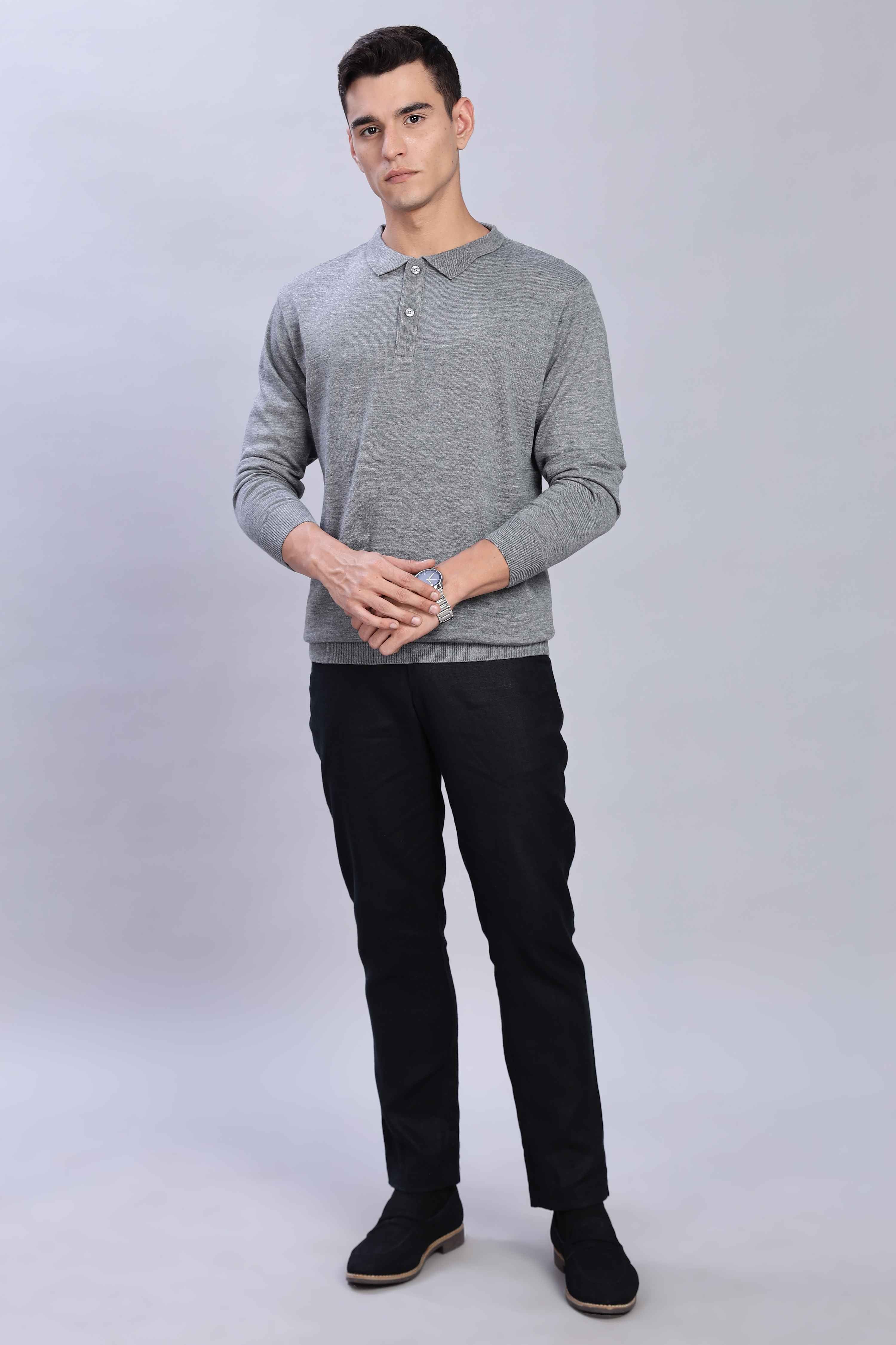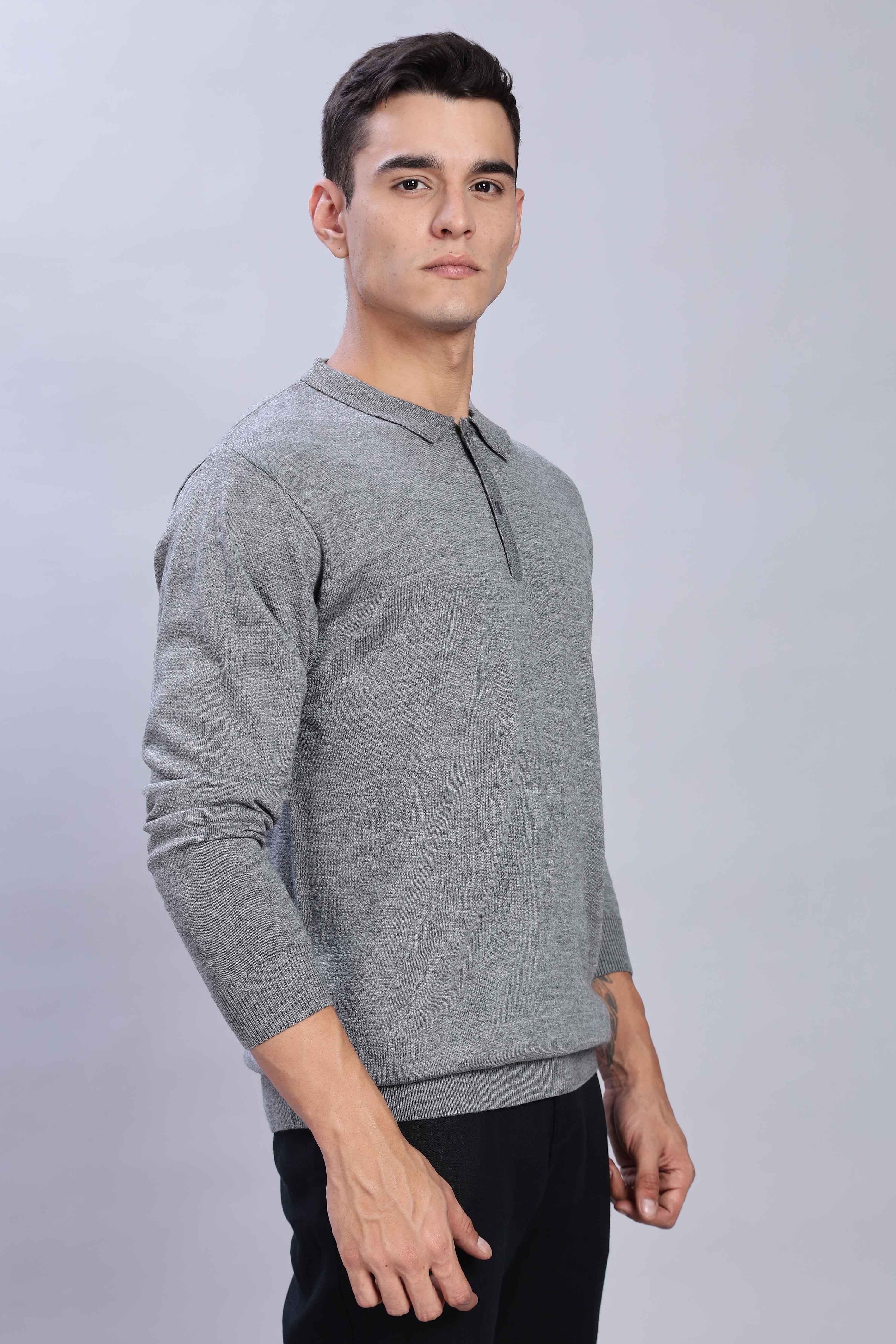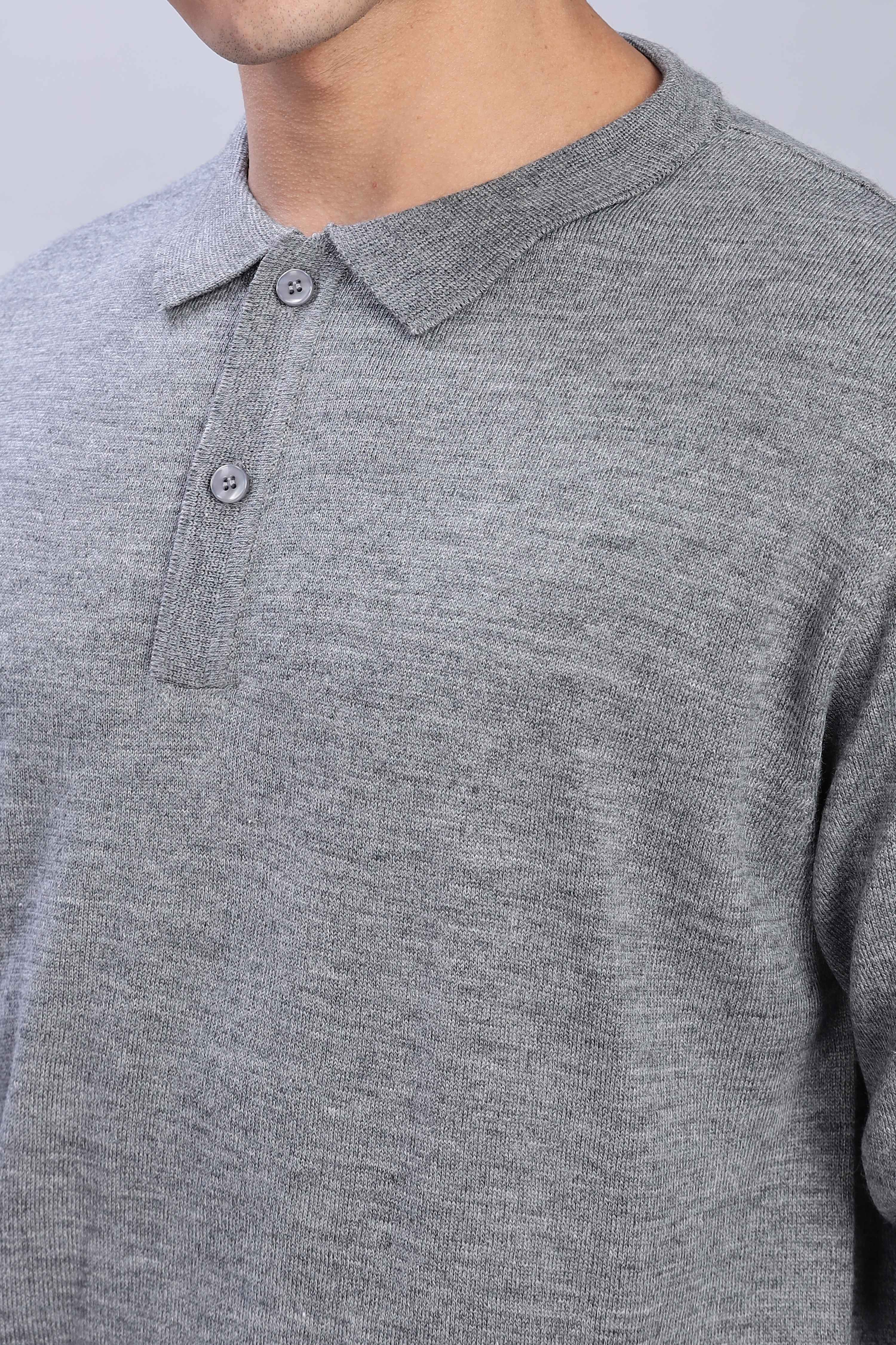 Crafted from a premium fine-knit fabric that offers both comfort and sophistication. Featuring Mid Grey color, a classic polo collar, and a sleek two-button placket, this versatile piece is perfect for layering or wearing solo