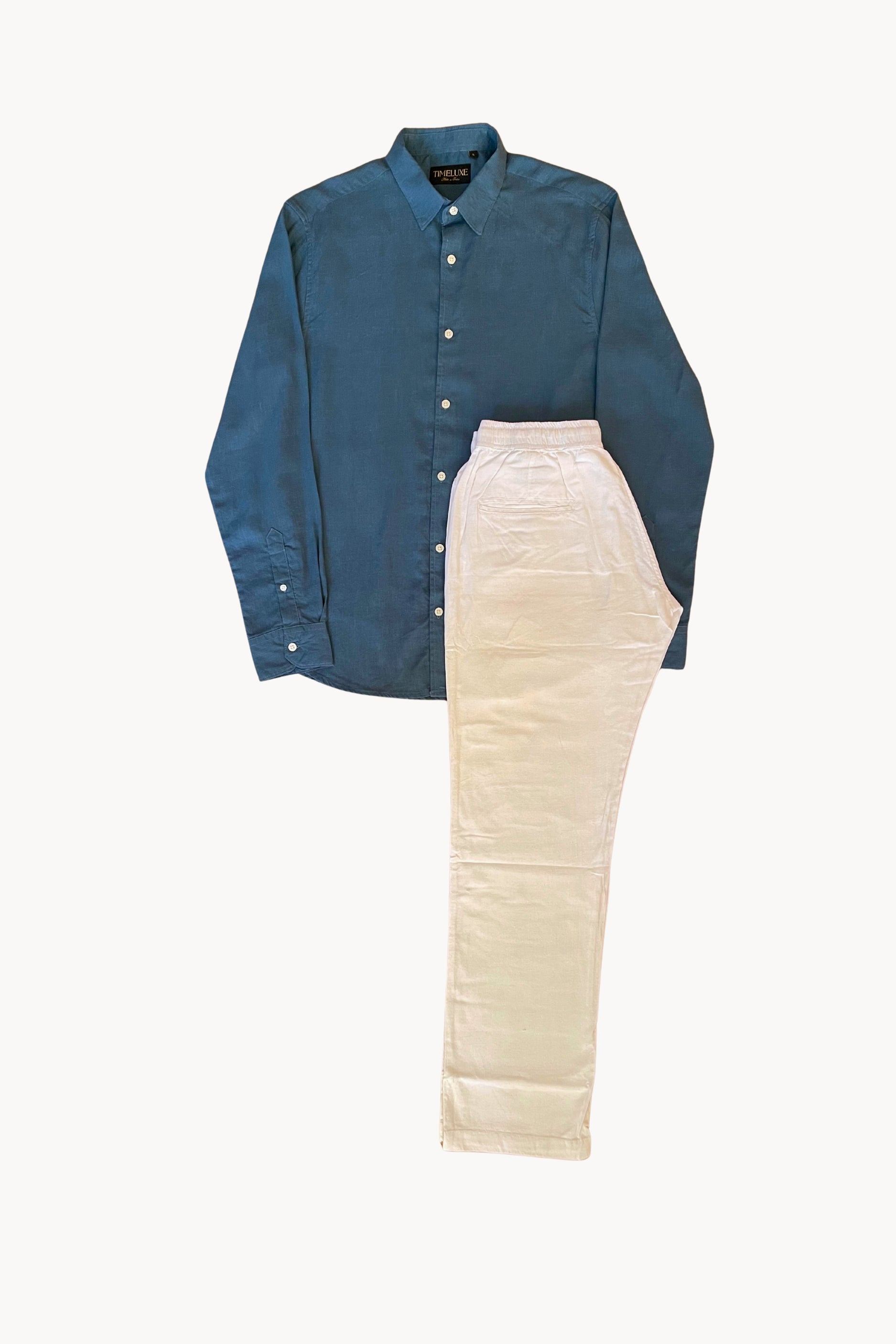 Elevate your wardrobe with the Premium Combo XV, featuring a meticulously tailored blue linen shirt paired with crisp white linen pants in a classic regular fit. This combo embodies timeless elegance with breathable fabrics that ensure comfort and durability, perfect for sophisticated occasions or refined casual wear. Experience the subtle luxury and effortless style of an old money aesthetic designed for the discerning gentleman.