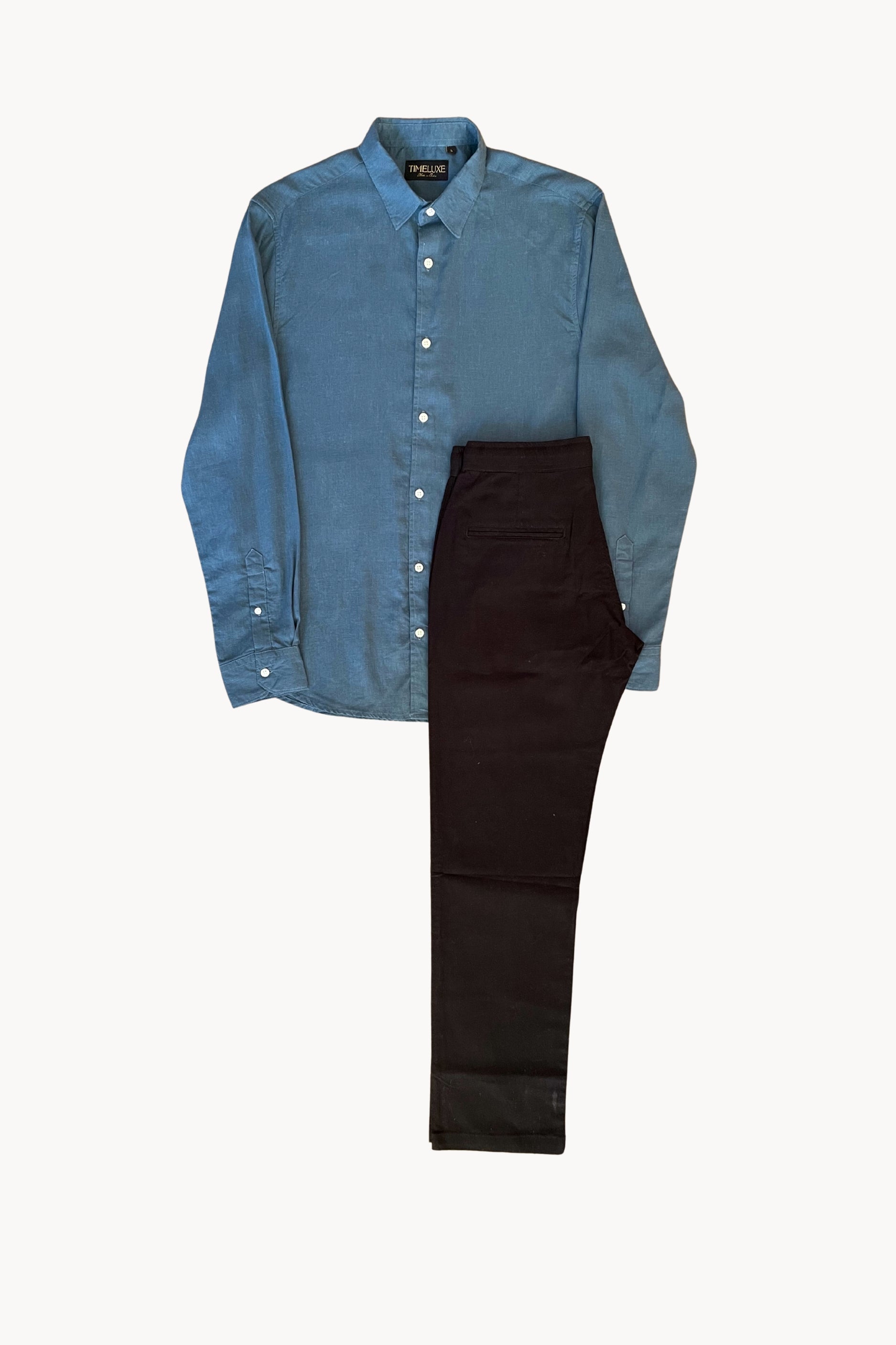 The Premium Combo XVIII offers a sophisticated old-money style featuring a blue linen shirt paired with black linen pants in a regular fit. This carefully curated combination balances timeless elegance with modern comfort, using breathable linen fabric to keep you cool and polished throughout the day. Ideal for gentlemen seeking understated luxury in both casual and semi-formal settings.