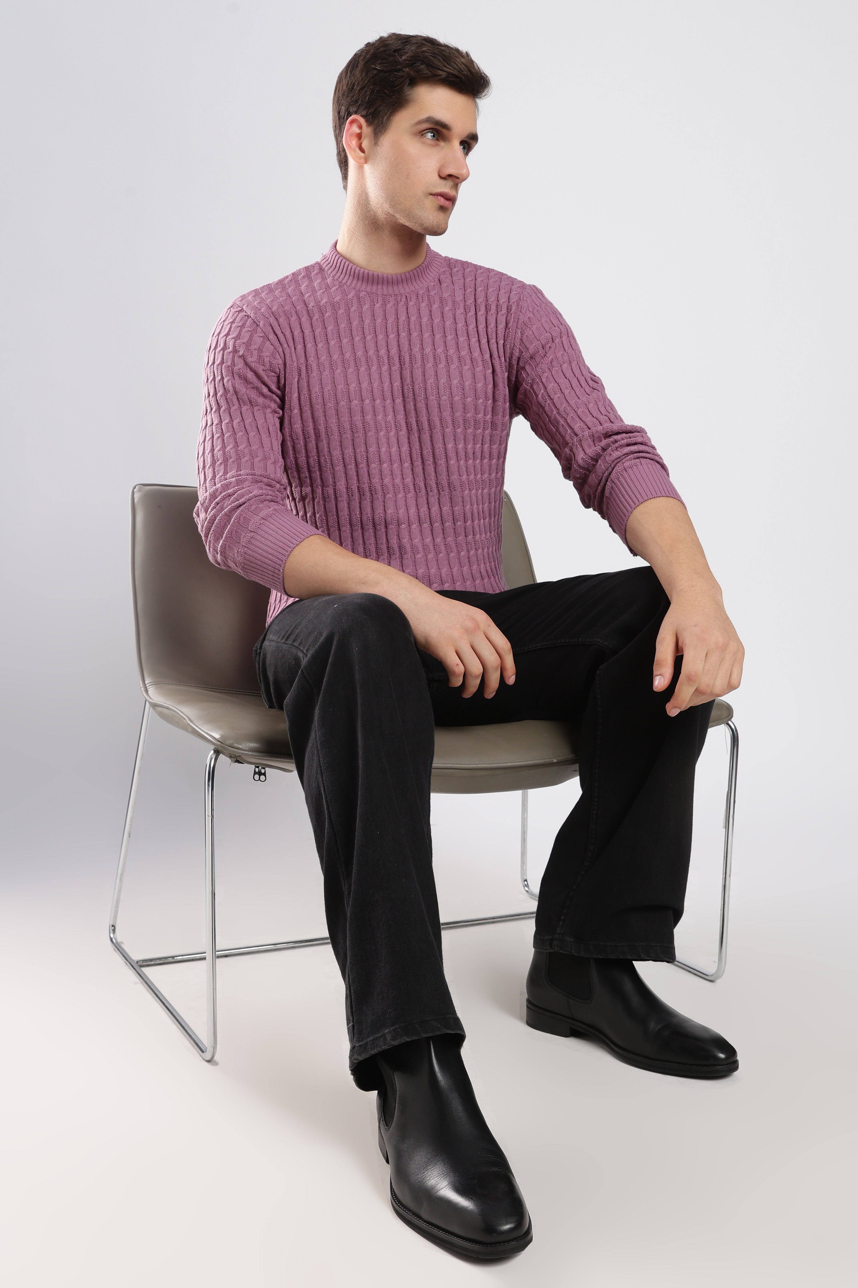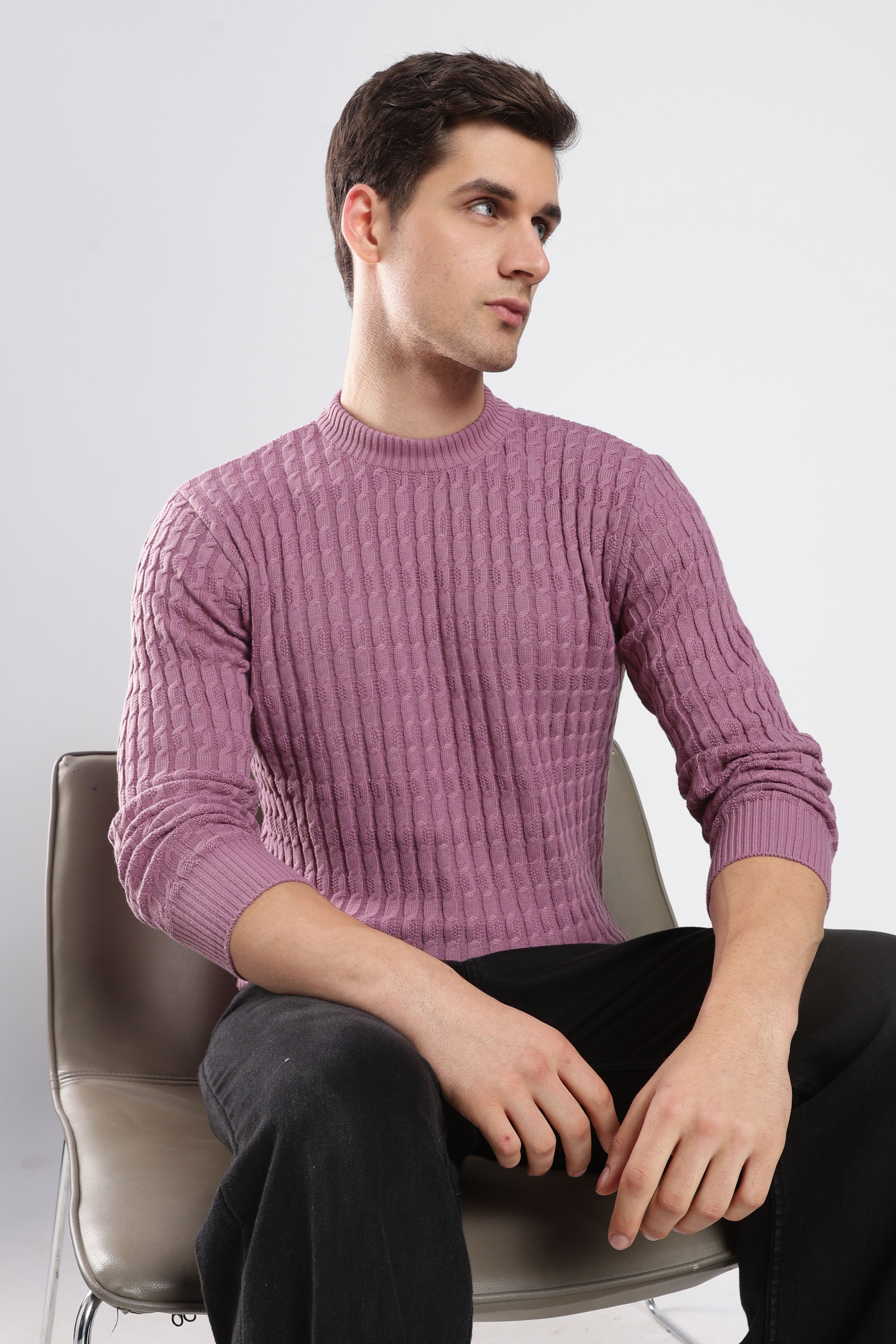 Textured dark grey sweatshirt with a sophisticated knit design. Effortlessly stylish and comfortable for any occasion.
