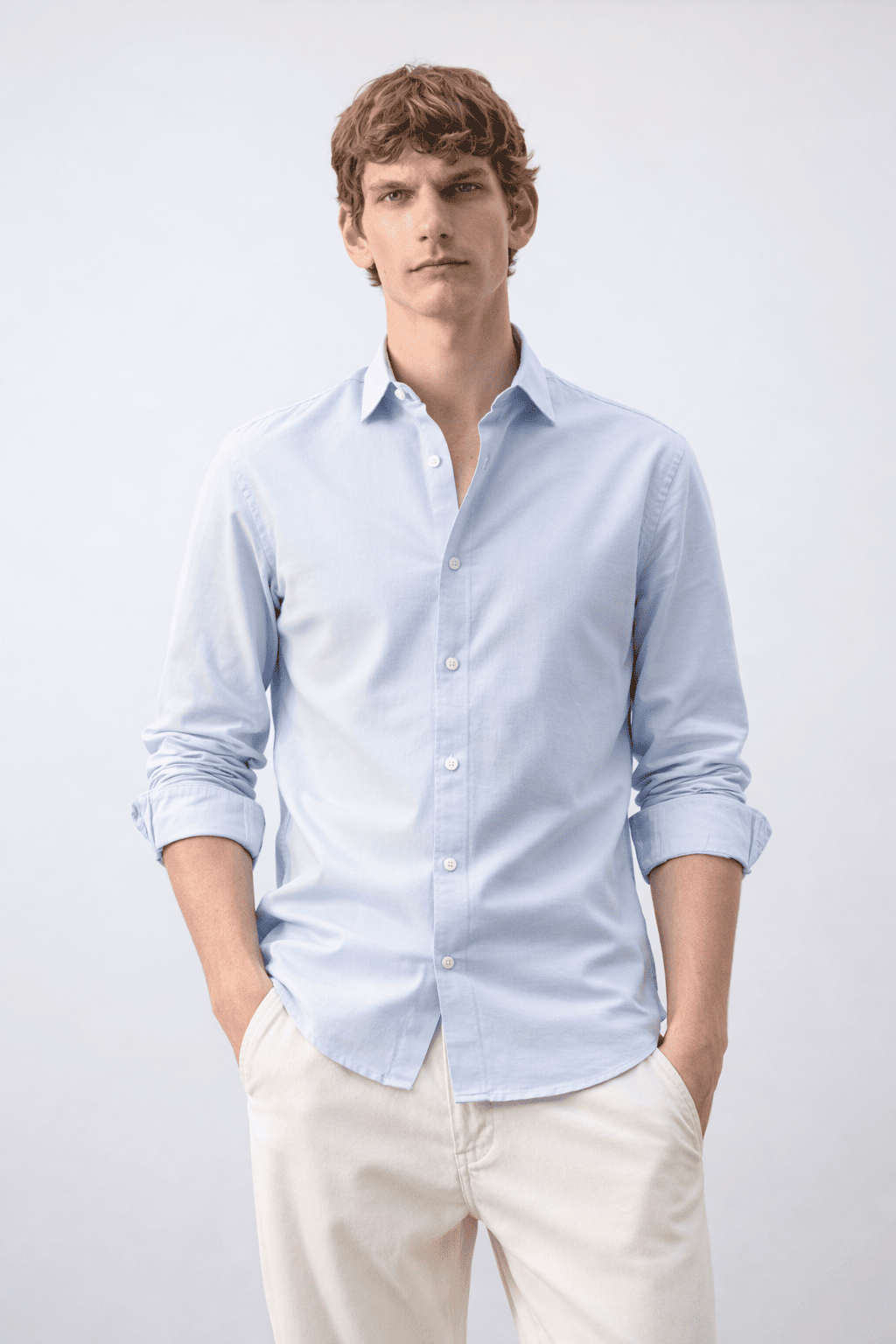 Elevate your wardrobe with the understated elegance of our Regular fit Blue Shirt. Designed for those who value timeless style, it embodies the quiet luxury of heritage craftsmanship