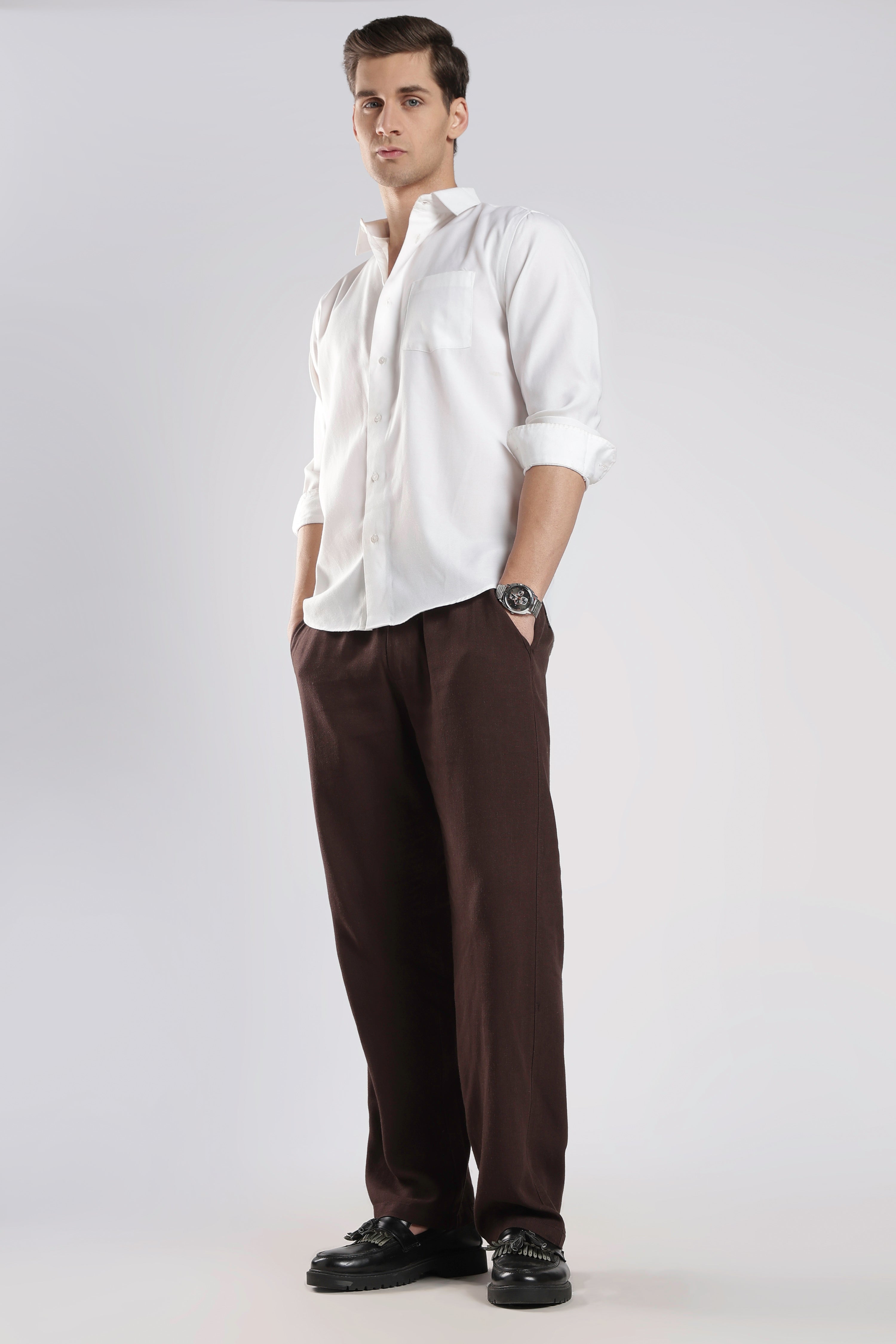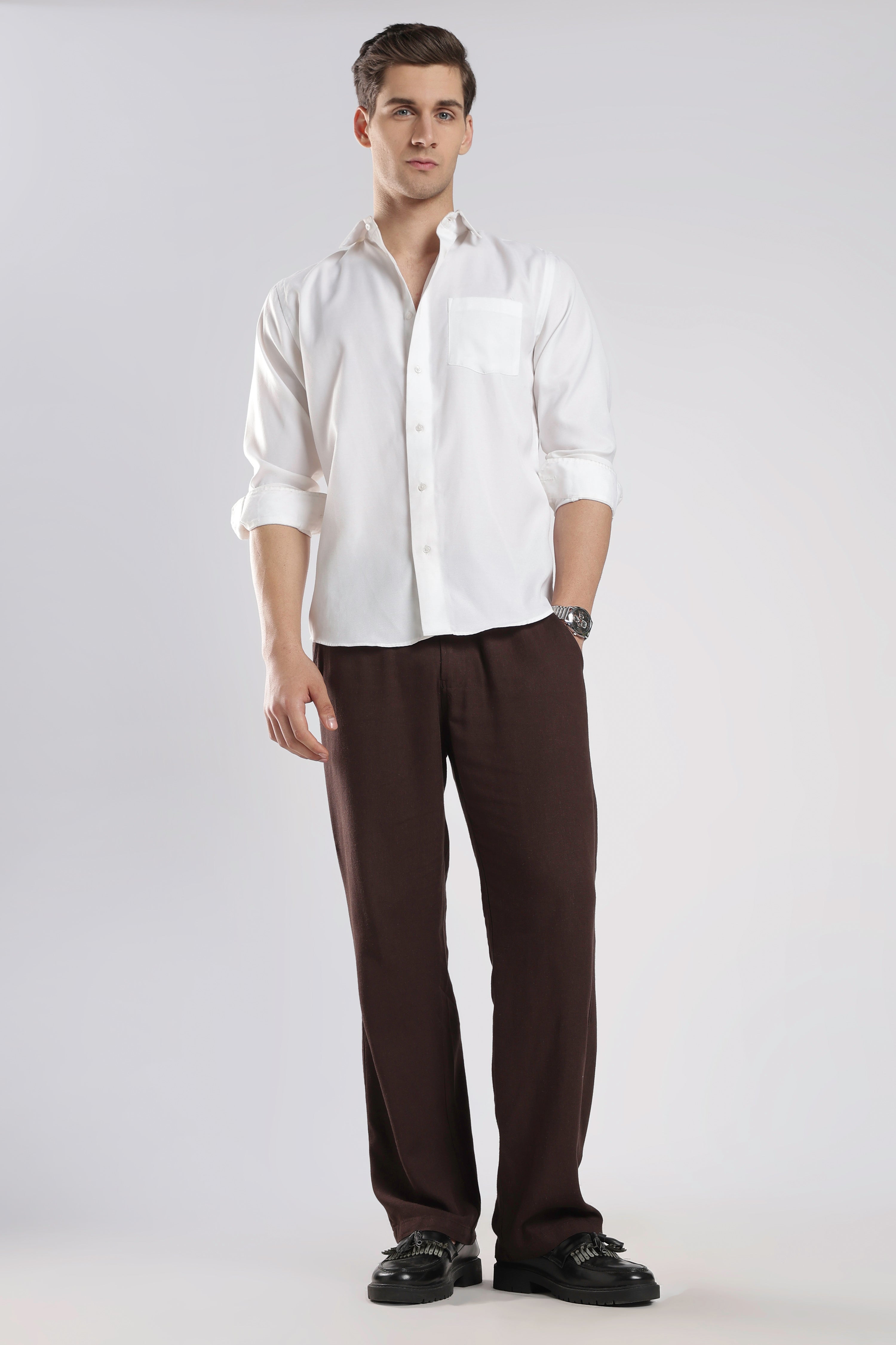The Classic Linen Pants, designed for ultimate comfort and effortless sophistication. Made from breathable linen in a classic Brown tone, these relaxed-fit pants feature an adjustable drawstring waist for a perfect fit.