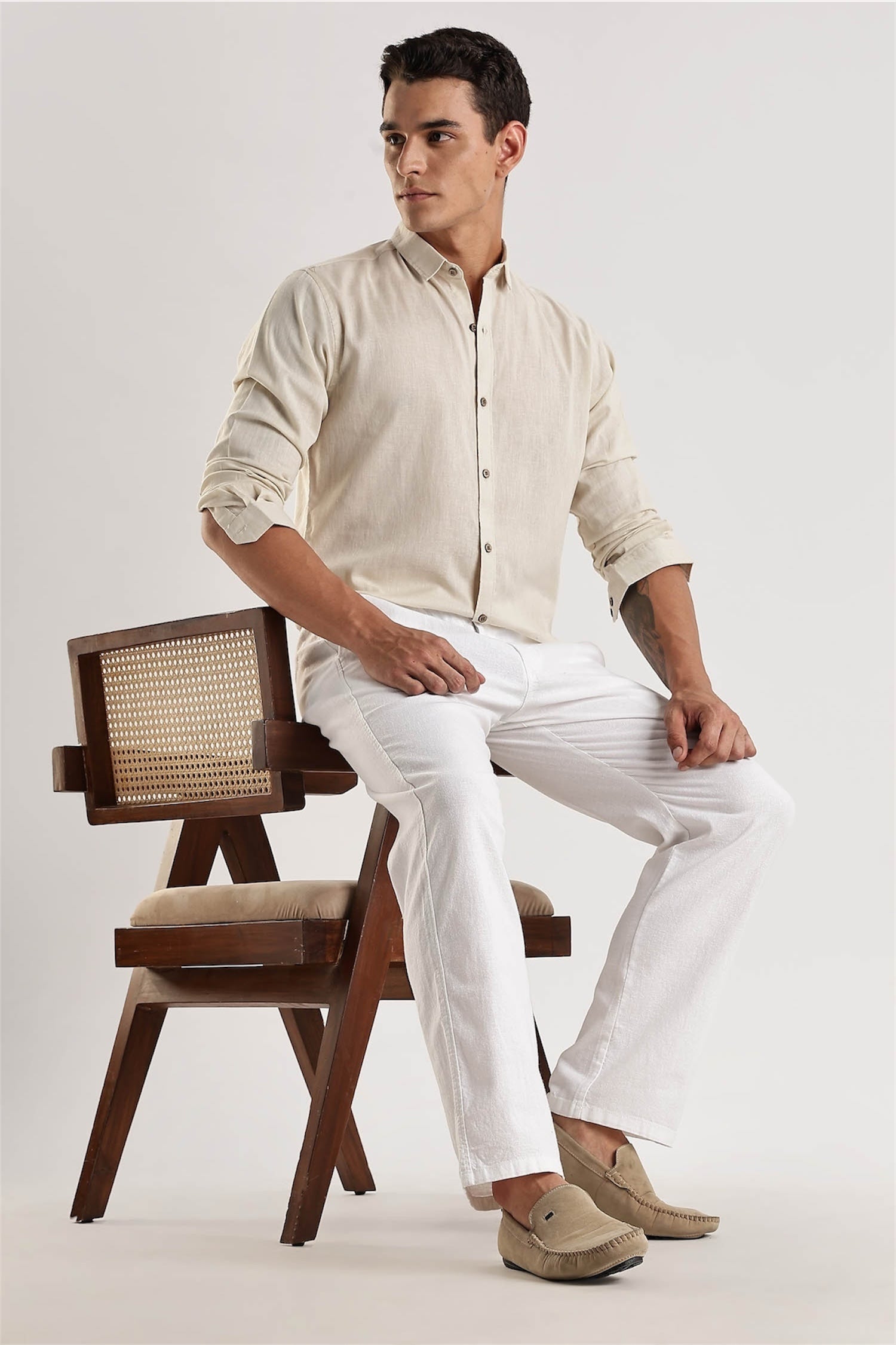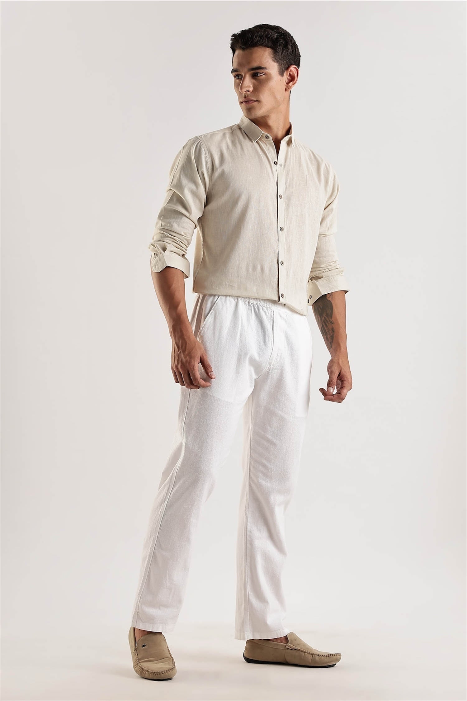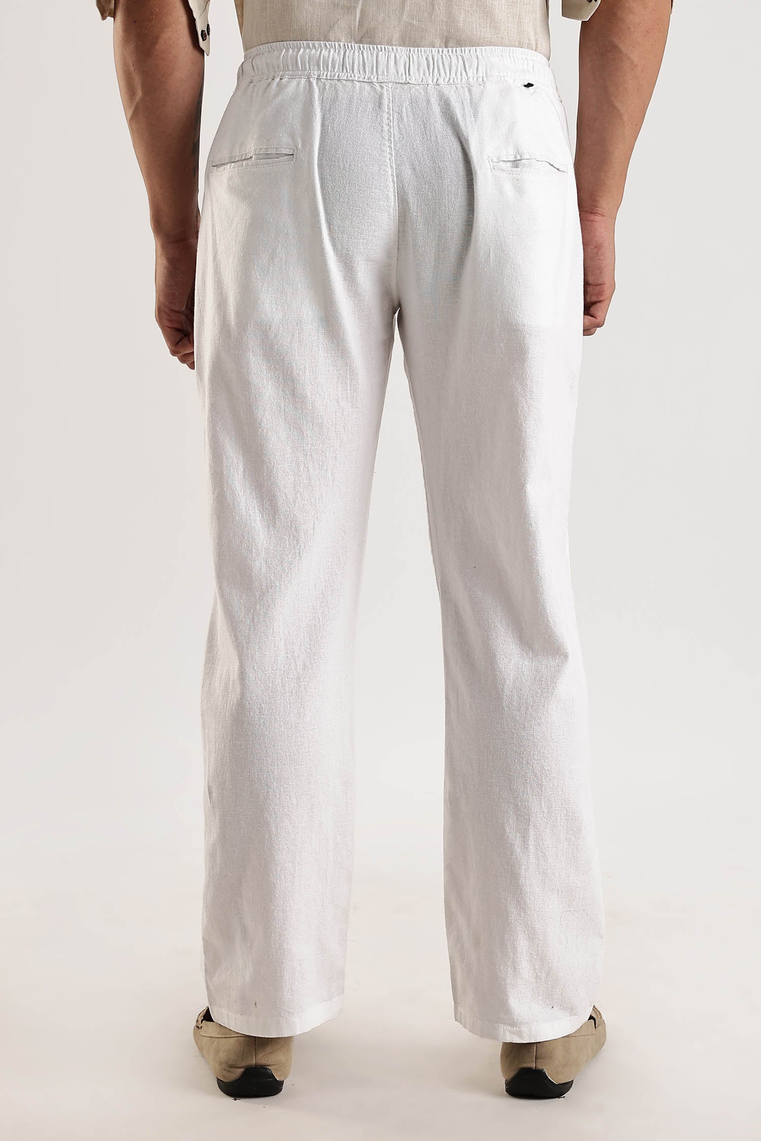These White Regular Fit Cotton-Linen Pants combine classic style with comfort. Made from a blend of cotton and linen, these pants offer a perfect fit and a timeless look. Elevate your wardrobe with these pants that embody an old money aesthetic.
